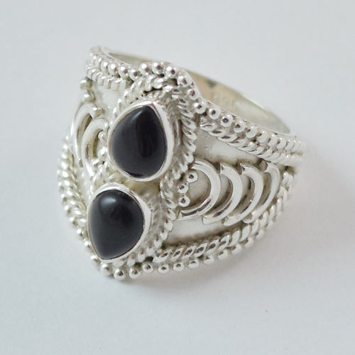 แหวนเงินแท้ 925 ประดับพลอยออนิกซ์สีดำ งานแฮนด์เมด แหวนเงินแท้ 925 แหวนเงินแท้ 925 ชุบทองคำขาว