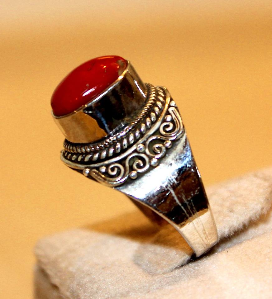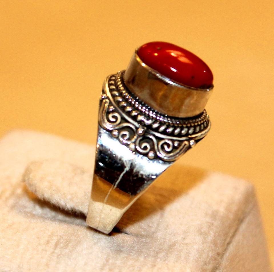 ทำด้วยมือ925แหวนแต่งงานเงินสเตอร์ลิงหินปะการังแดงอัญมณีบาร์การตั้งค่าของขวัญครบรอบทุกเพศเครื่องประดับงานปาร์ตี้ผู้หญิงใช้