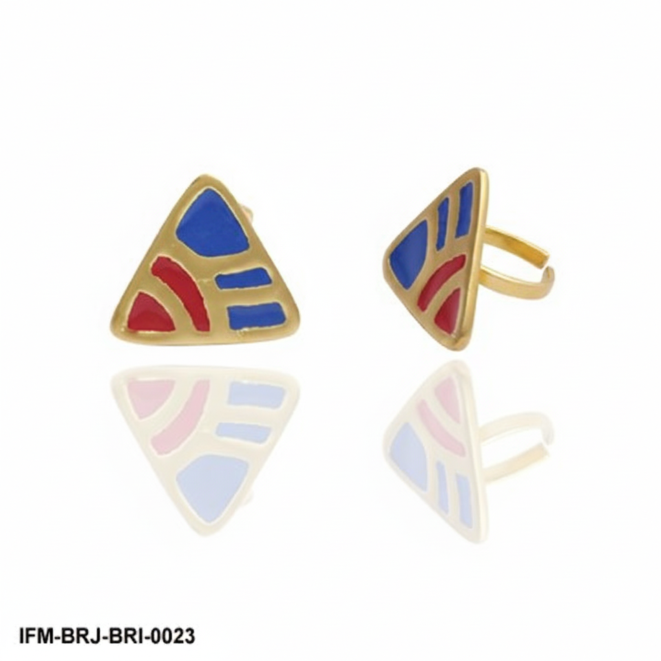 แหวนทองเหลืองรูปทรงเรขาคณิตแบบนามธรรม งานแฮนด์เมด ประดับด้วยเคลือบสีแดงและน้ำเงิน รูปทรงสามเหลี่ยม ดีไซน์โดดเด่น