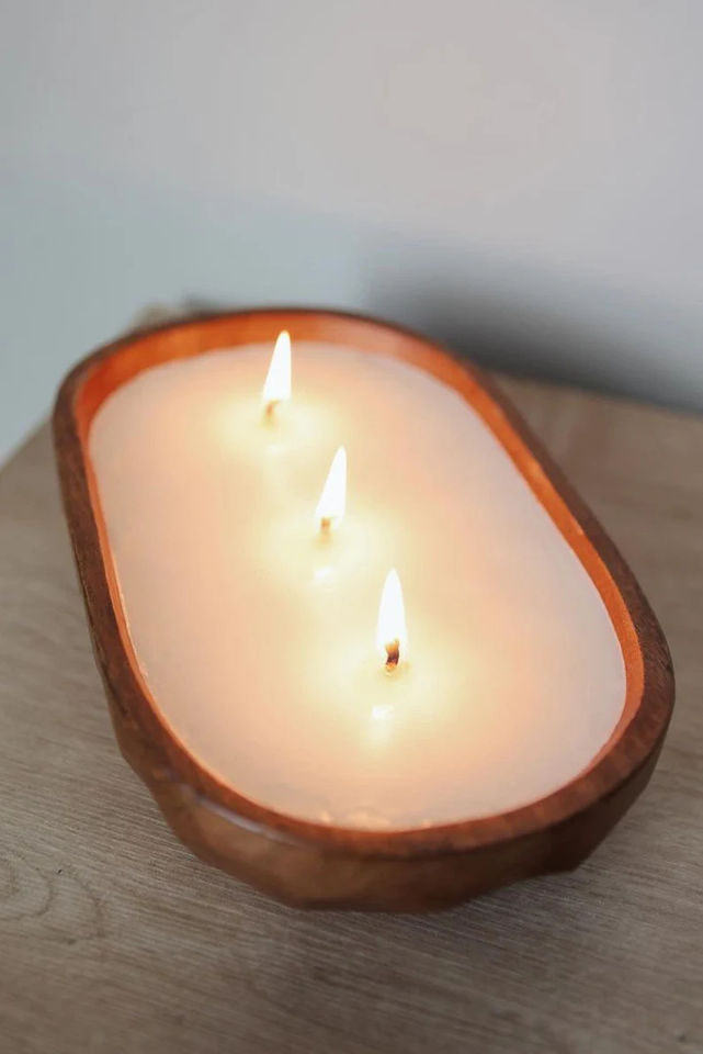 Wooden candle bowl