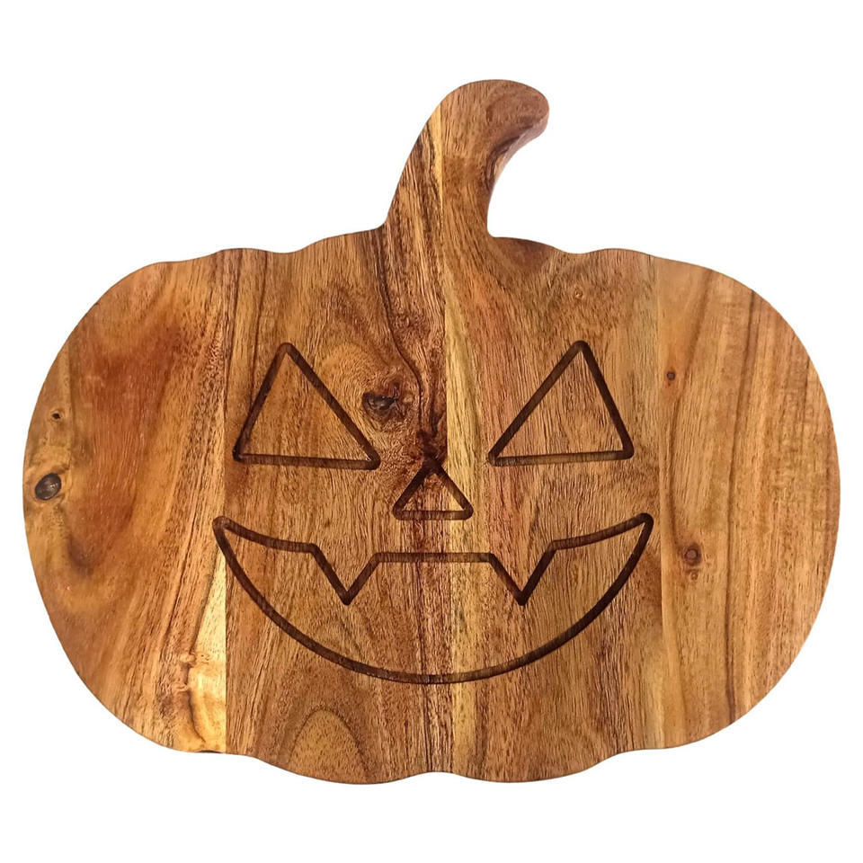 ถาดไม้อะคาเซียทำมือพร้อมที่จับถาดเขียงและจานตกแต่งลายฮาโลวีนสุดหรู