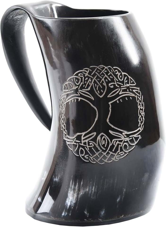 หินโมราทำมือรูปเขาสำหรับดื่มรูปควายธรรมชาติแกะสลักแบบไวกิ้งสามารถปรับแต่งได้สำหรับการดื่มเบียร์หรือไวน์