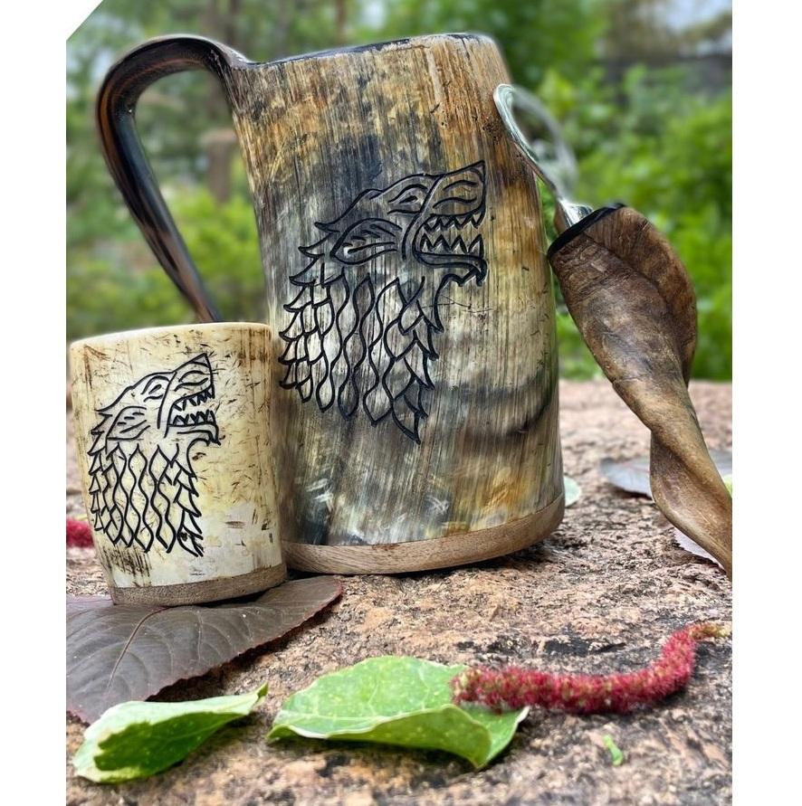แก้วเขาควายแท้ทำมือ งานฝีมือ แก้วน้ำทรงแวกิ้ง สำหรับดื่มไวน์และเบียร์