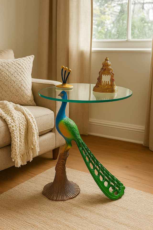 Handcrafted Aluminium Casted Gold Plated and Colorful Resin Base for Living Room & Home Decor Coffee Table