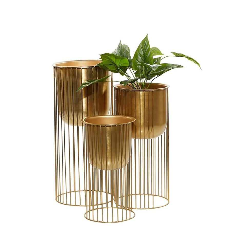 กระถางต้นไม้เคลือบผงอลูมิเนียมทำมือเป็นมิตรกับสิ่งแวดล้อมพร้อมขาตั้งหรูหราสำหรับบ้านและสวนสไตล์คลาสสิก