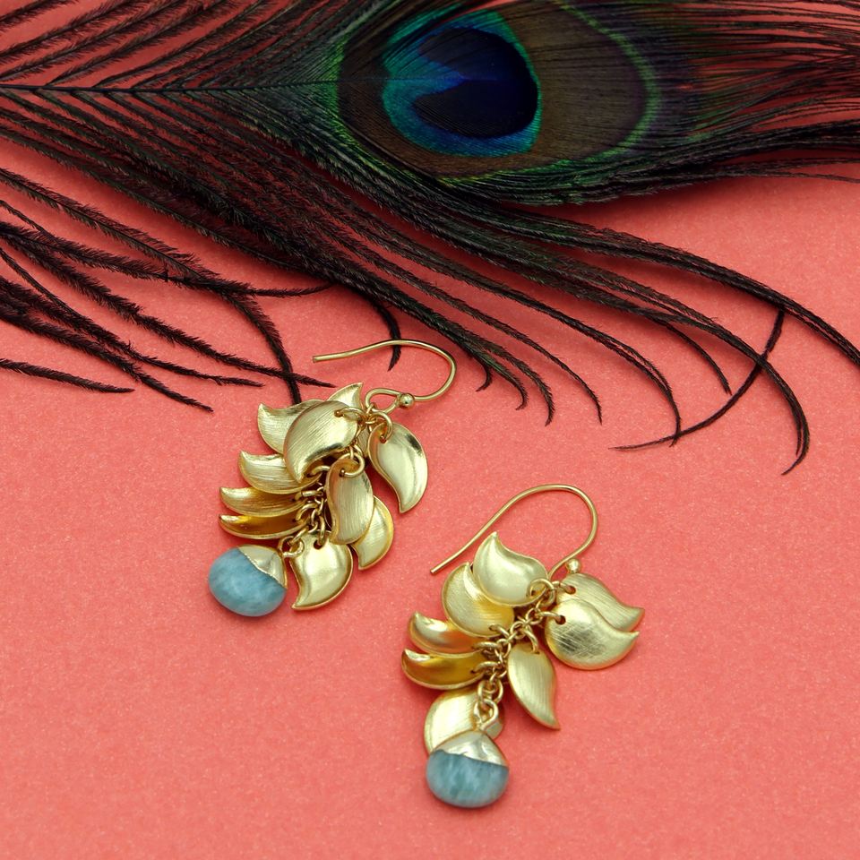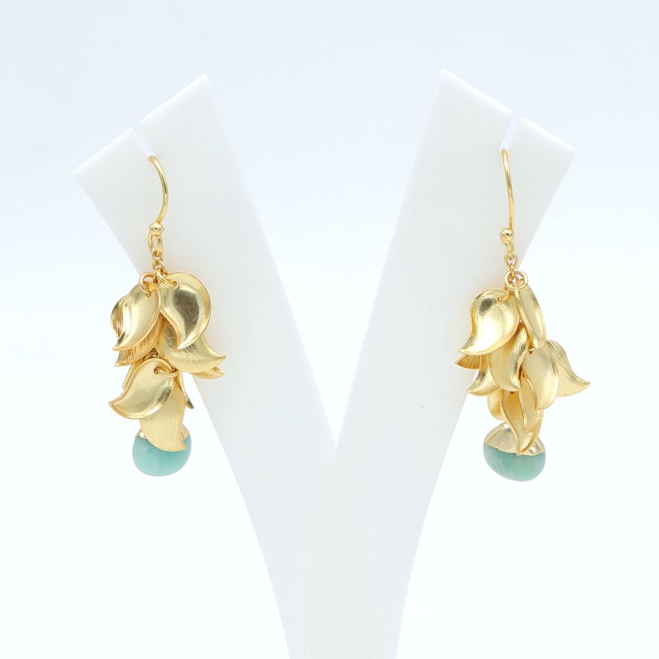 ต่างหูห้อยทำด้วยมือสำหรับผู้หญิง Dua | ดีไซน์ใบองุ่นอมาโซไนต์ทองเหลืองชุบทอง18K | งานแต่งงาน | ผู้ผลิต