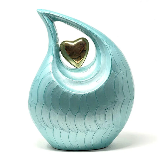 โกศใส่เถ้ากระดูกสำหรับผู้ใหญ่ ทำด้วยมือ สไตล์อเมริกัน สีตามสั่ง รูปทรงหยดน้ำ หัวใจสีทอง ดีไซน์สวยงาม ทนทาน ผลิตจากโลหะ สำหรับผู้ที่มีเชื้อสายจากอินเดีย