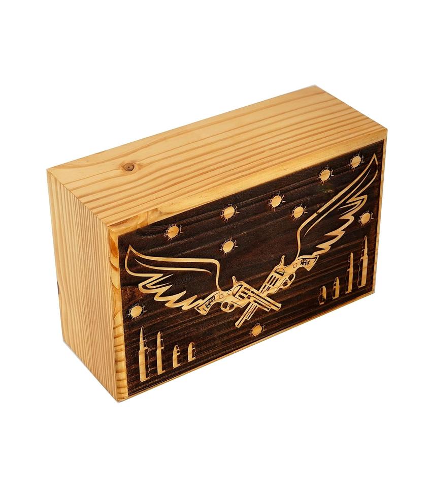 Handcrafted Angel Wings Revolver โกศเผาศพไม้สําหรับเถ้ามนุษย์ผู้ใหญ่ขนาดใหญ่ - กล่องโกศงานศพ (250 ปอนด์ - กระสุนไม้สน)
