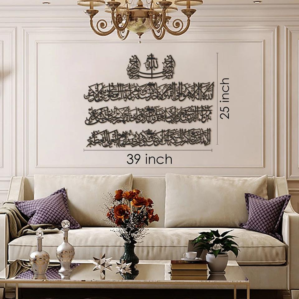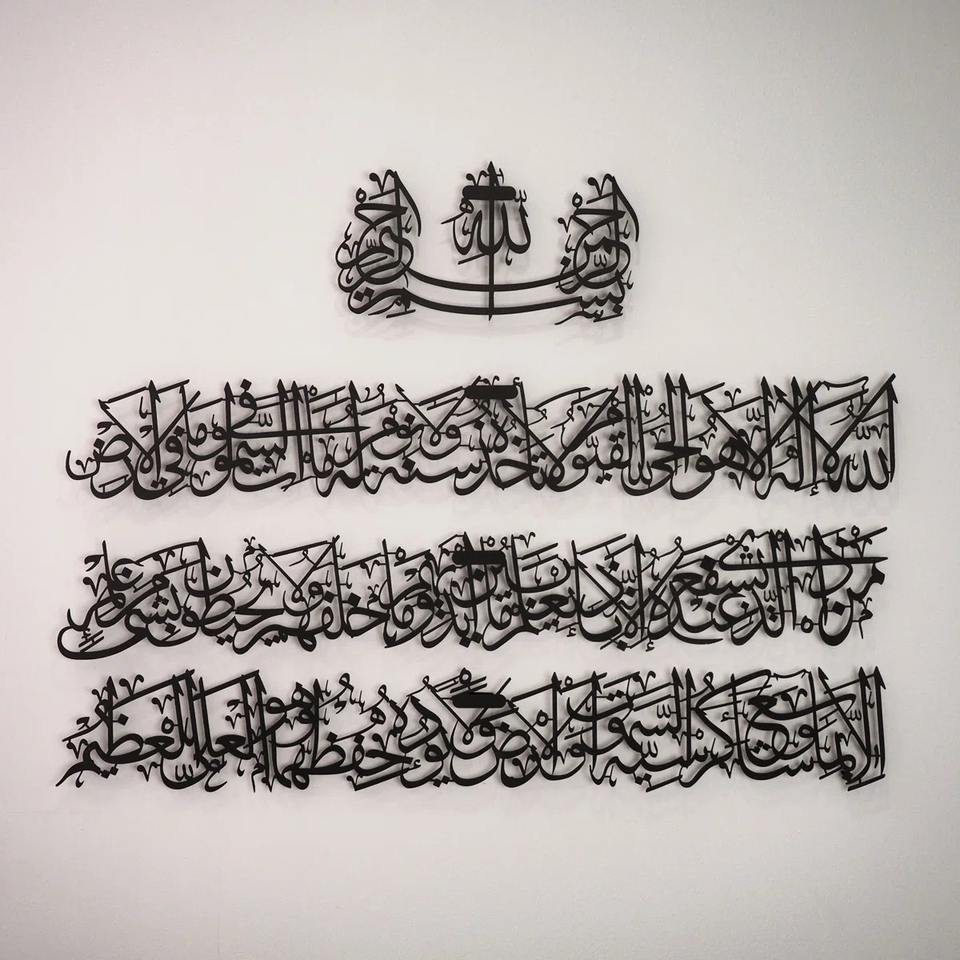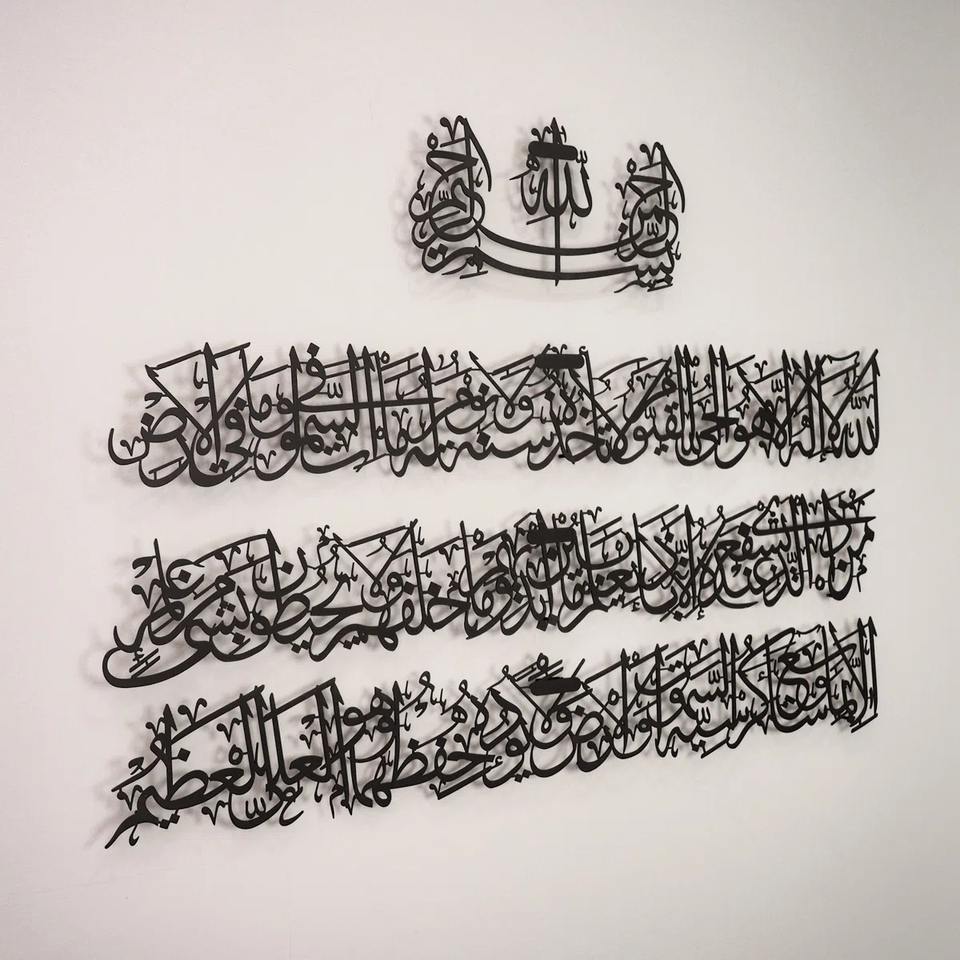 งานศิลปะติดผนังโลหะอายะฮ์ อัลกุรซีย์ ภาษาอาหรับ ทำด้วยมือ สีดำ เหมาะสำหรับตกแต่งบ้าน สำนักงาน ห้องละหมาด และมัสยิด นำเข้าจากอินเดีย