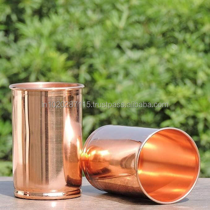 แก้วทองแดงอายุรเวททำด้วยมือขอบโค้งมนและพื้นผิวที่หรูหราเหมาะสำหรับการดีท็อกซ์น้ำและการตกแต่งบ้านแบบคลาสสิก