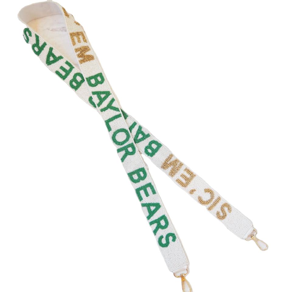 สายคล้องกระเป๋าทำมือจากผ้าฝ้ายประดับลูกปัด BAYLOR ดีไซน์โดดเด่นสะท้อนความรักของทีม พร้อมงานปักลูกปัดอย่างประณีตสำหรับแฟนๆ ทีมเบย์เลอร์ สำหรับวันแข่งขัน