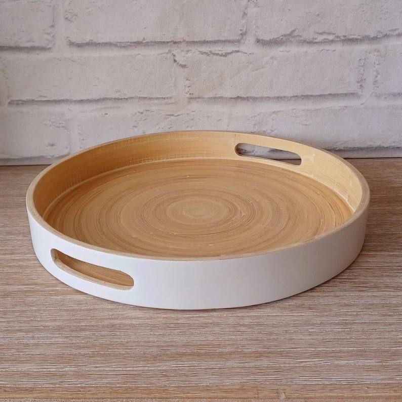 ถาดไม้ไผ่ทำมือพร้อมที่จับสำหรับเสิร์ฟอาหารถาดโต๊ะกาแฟถาดตกแต่งสำหรับเคาน์เตอร์ห้องครัว