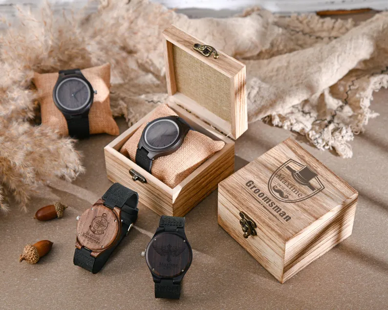 กล่องนาฬิกาทำจากไม้ไผ่ทำมือทรงสี่เหลี่ยมพร้อมฝากระจกและตัวล็อคสีทองของขวัญสุดหรูขายดีจากเวียดนาม