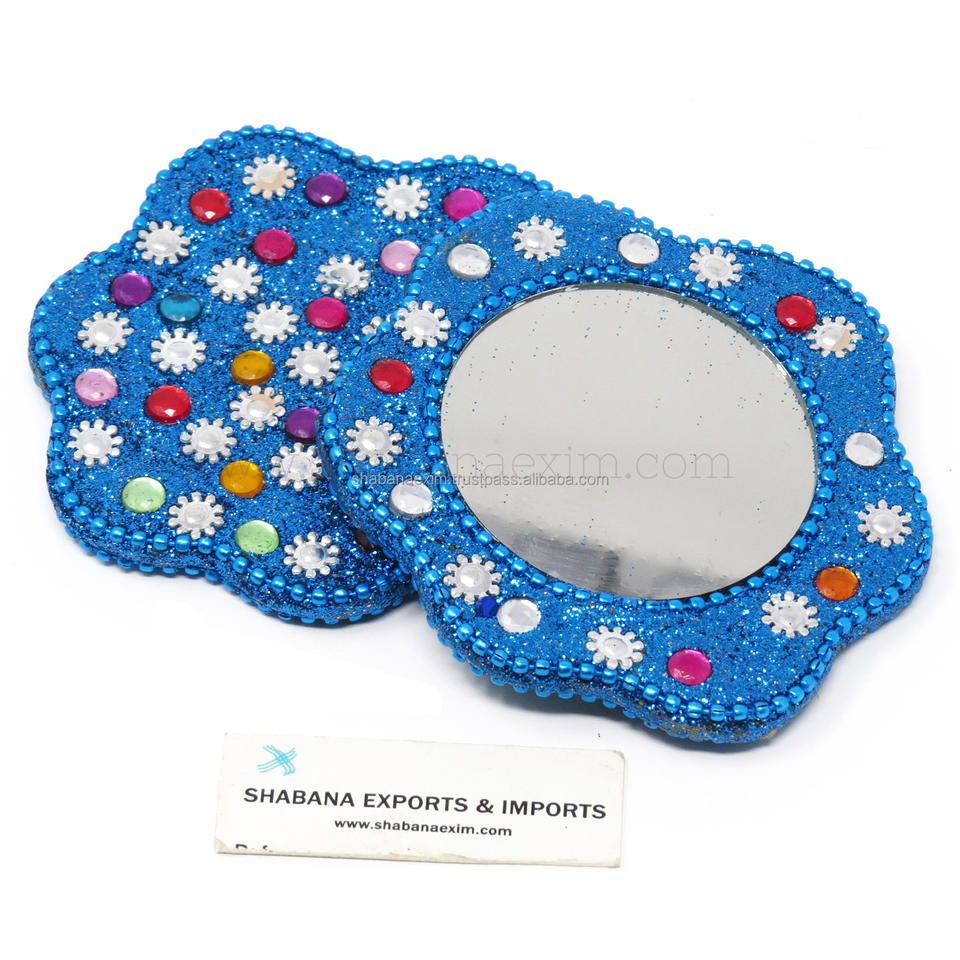 กระจกพกพาแบบมีกลิตเตอร์ประดับลูกปัดทำมือ พร้อมงานฝังหิน เหมาะสำหรับเป็นของขวัญเจ้าสาว พกพาสะดวก
