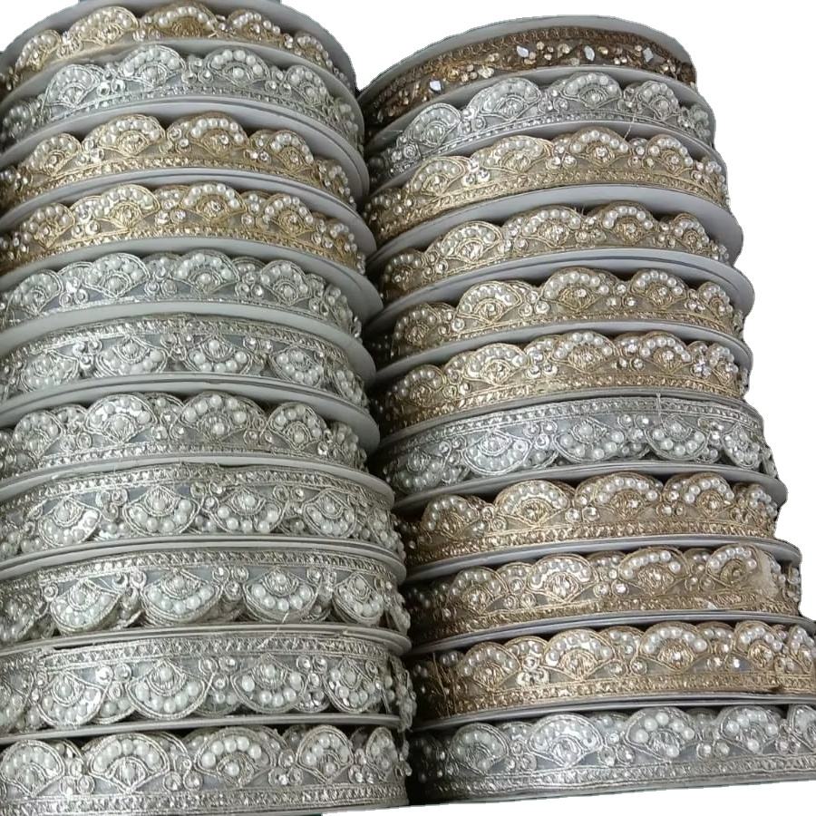 งานปักลูกปัดประดับด้วยผ้าลูกไม้ลายเรขาคณิตแบบละลายน้ำได้ เป็นมิตรกับสิ่งแวดล้อม สีสันปรับแต่งได้ ดีไซน์หรูหราสำหรับเจ้าสาว