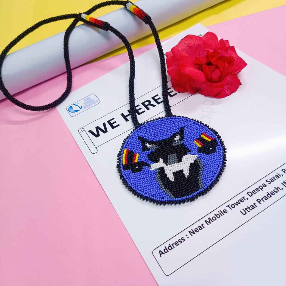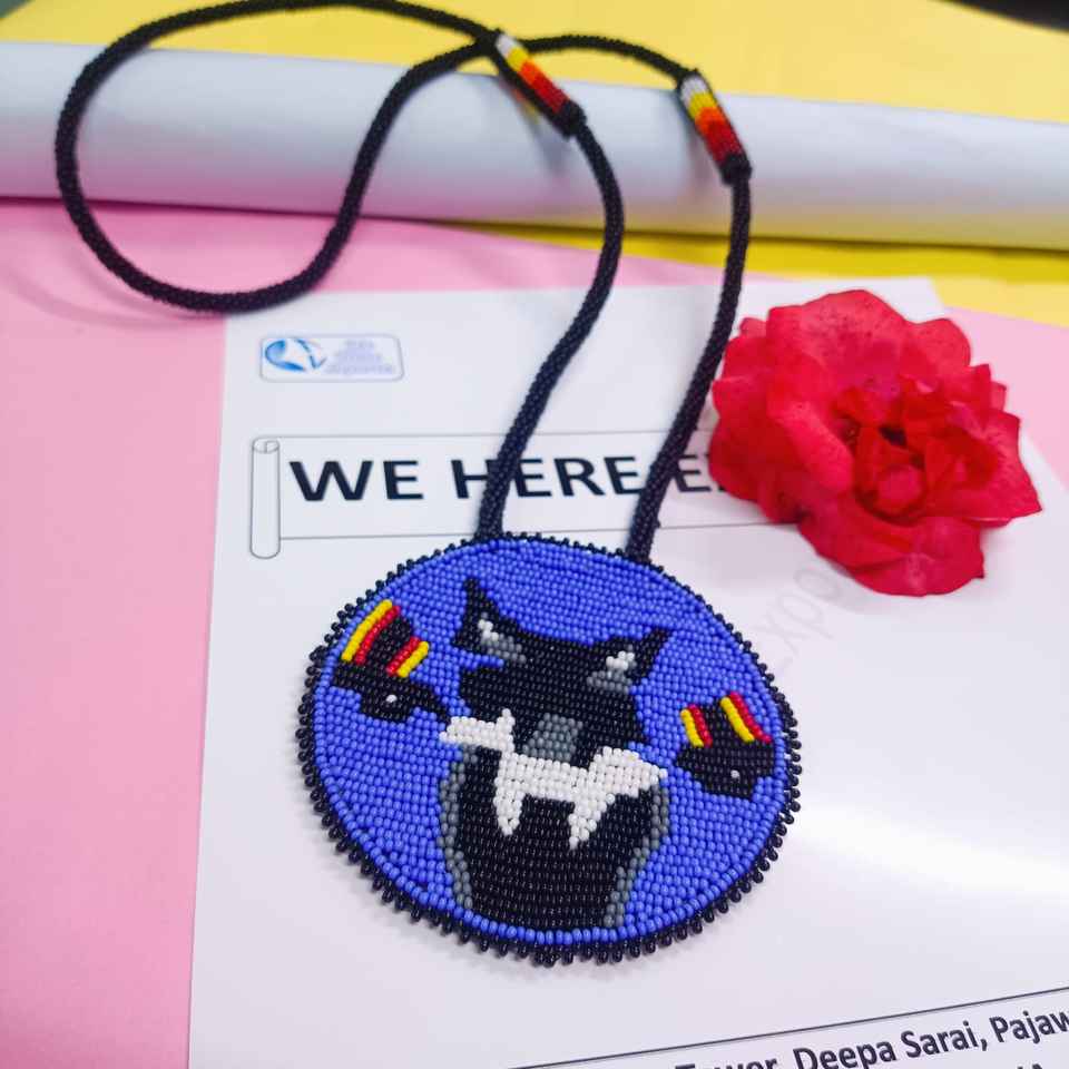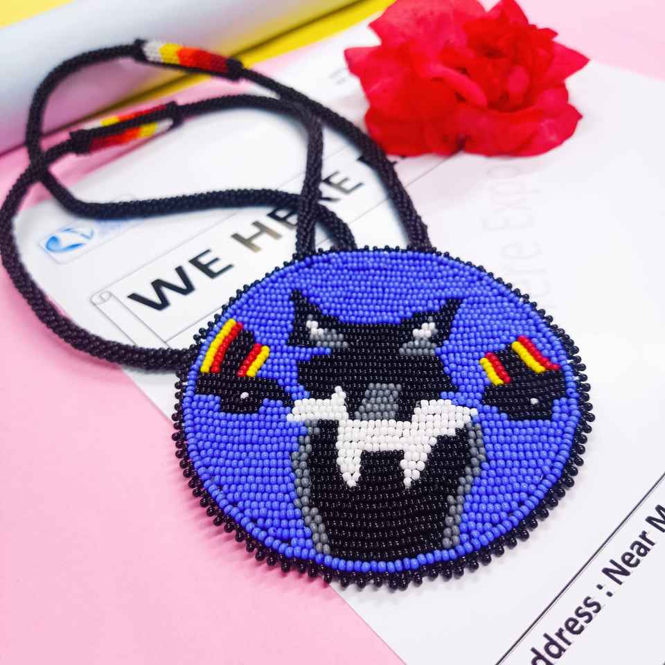 สร้อยคอจี้รูปหมาป่าประดับลูกปัดทำมือ พร้อมลูกปัดสีดำ ขาว แดง เหลือง ส้ม น้ำเงิน และเชือกเส้นยาว สำหรับสวมใส่เพื่อการศิลปะและวัฒนธรรม