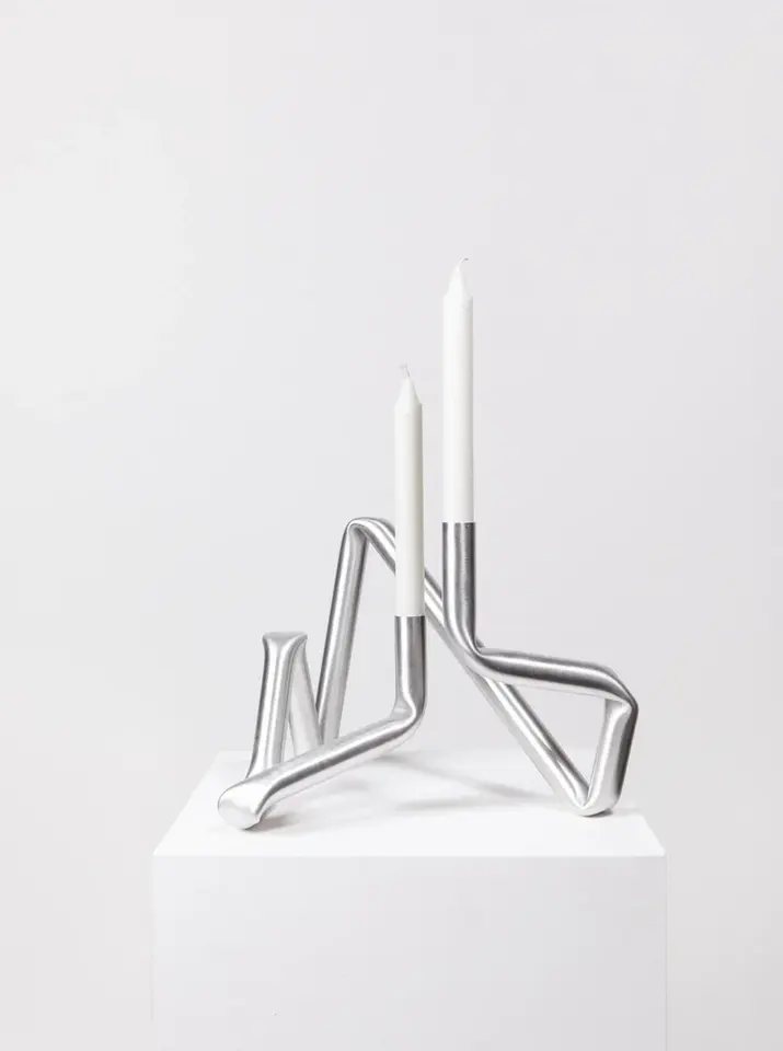 เชิงเทียนคริสมาสต์ทำด้วยมือสีเงินชุบนิกเกิลโลหะเชิงเทียนดีไซน์สวย