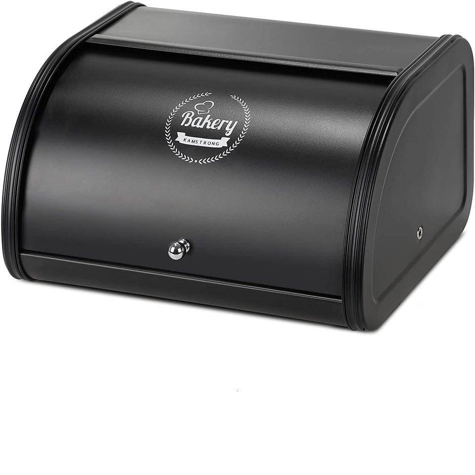 กล่องใส่ขนมปังโลหะสีดำสไตล์ฟาร์มเฮาส์ งานแฮนด์เมด สำหรับวางบนเคาน์เตอร์ครัว กล่องขนมปังสแตนเลสยอดนิยมพร้อมฝาปิด