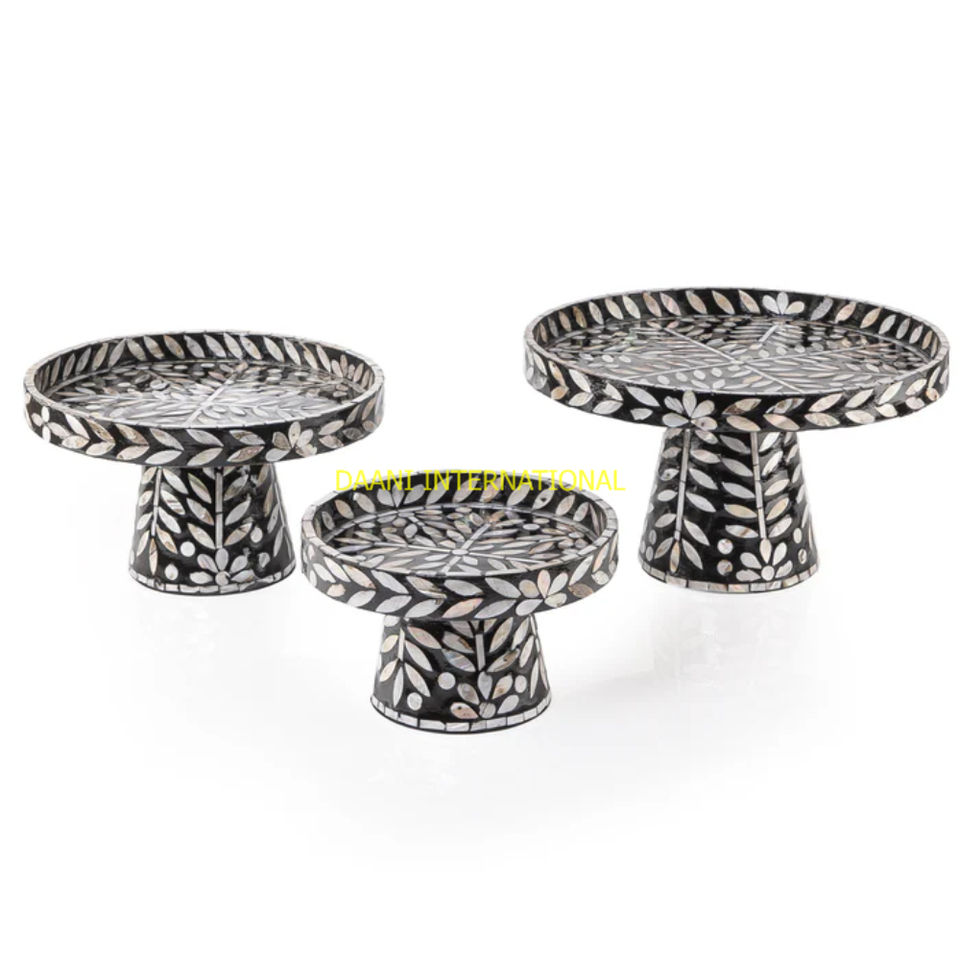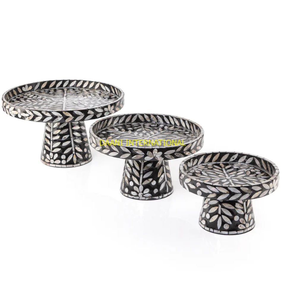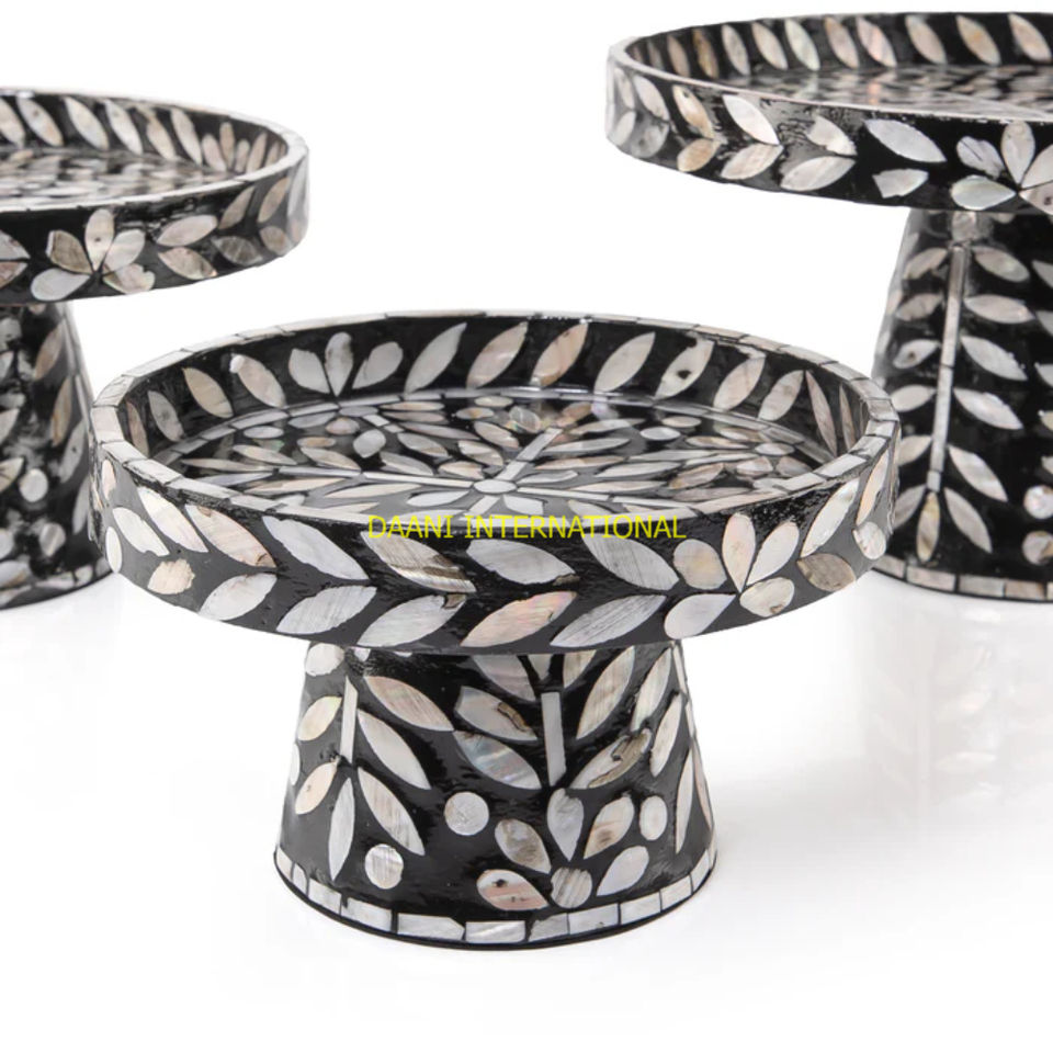 ชุดแท่นวางเค้กแบบฝังสีดำทำด้วยมือถาดโชว์ขนม3รอบพร้อมลวดลายดอกไม้สำหรับงานแต่งงาน