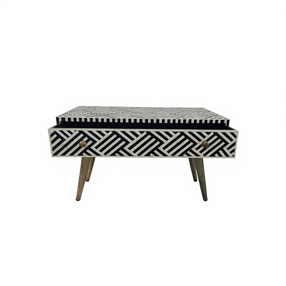โต๊ะคอนโซลไม้ฝังกระดูกสีดำและสีขาว งานแฮนด์เมด สำหรับตกแต่งภายในสไตล์โมเดิร์นในโรงพยาบาล โรงเรียน และอพาร์ตเมนต์