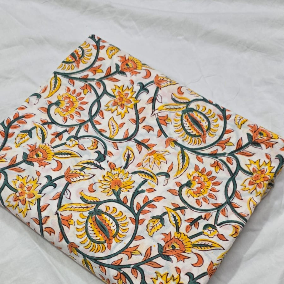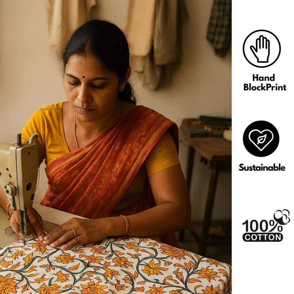 ผ้าฝ้ายพิมพ์ลายบล็อกทำมือ | ผ้าทอเนื้อนุ่มระบายอากาศได้ดี | ผ้าทึบแสงที่เป็นมิตรกับสิ่งแวดล้อม | ลายพิมพ์ดอกไม้แบบชาติพันธุ์สำหรับตกแต่งบ้าน