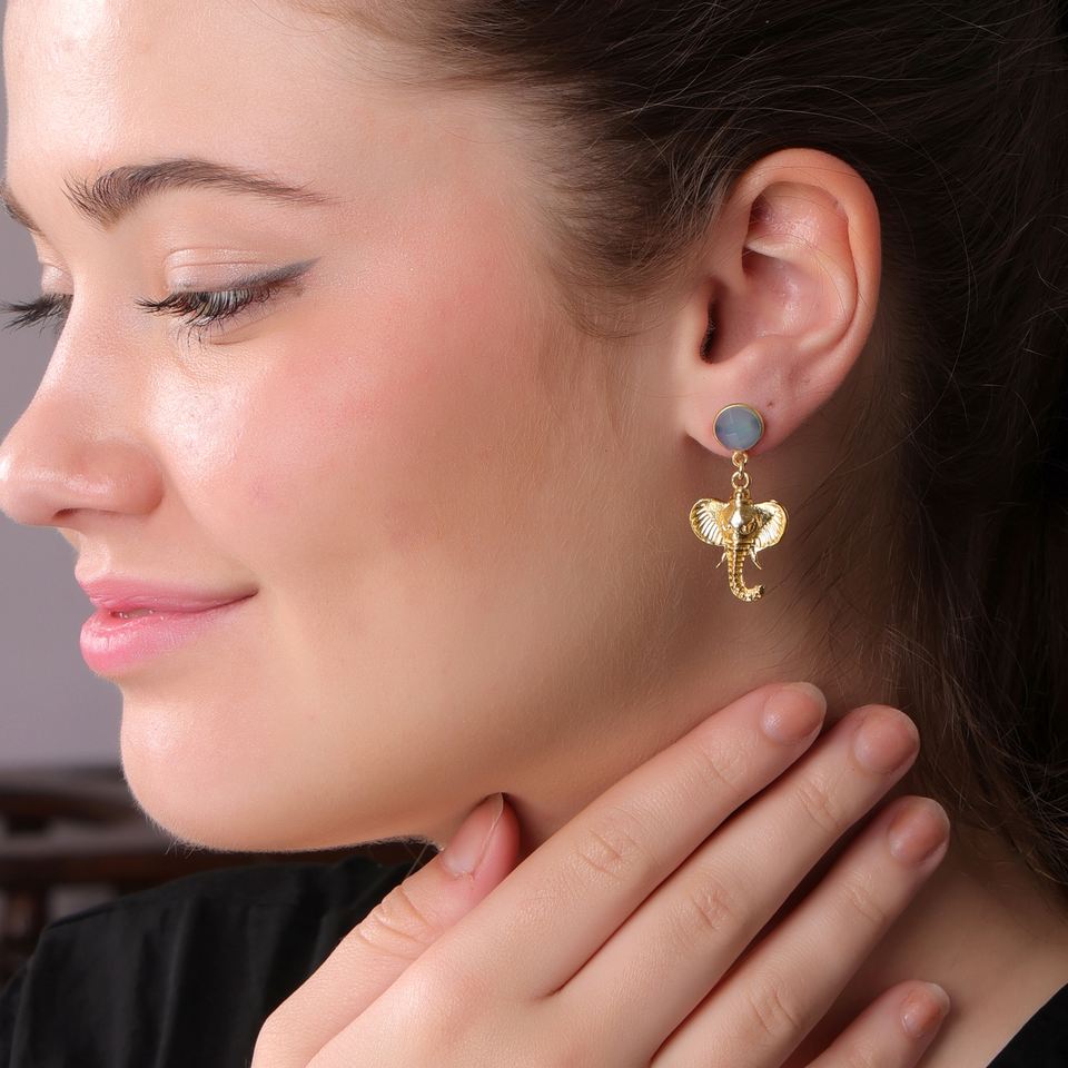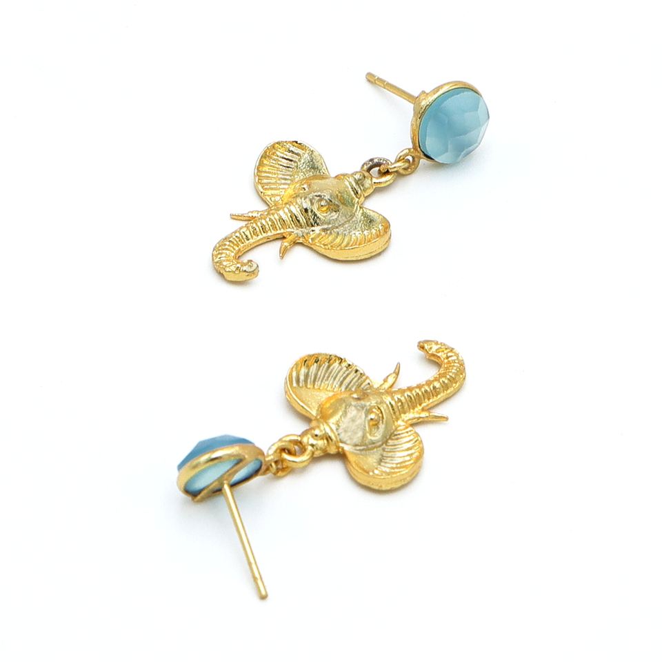 ต่างหูระย้ารูปพระพิฆเนศสีฟ้าทำด้วยมือ | งานแต่งงานทันสมัยทำจากทองเหลืองชุบทอง18K สำหรับผู้หญิง | Dua ผู้ผลิตอินเดีย B2B