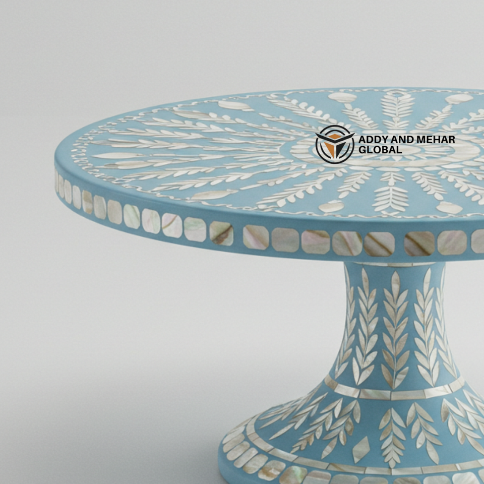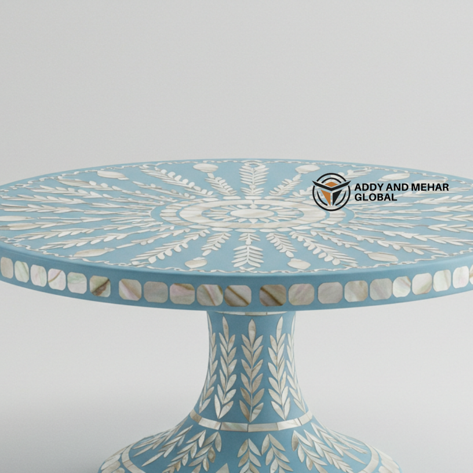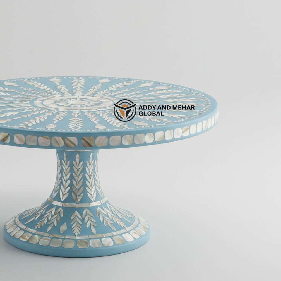 ฐานวางเค้กทรงกลมฝังมุกสีน้ำเงินทำมือ รักษ์โลก หรูหรา สำหรับของหวานและของตกแต่ง