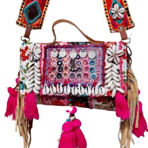 กระเป๋าสะพายไหล่ผ้าฝ้ายโบฮีเมียนทำมือสำหรับผู้หญิงสไตล์วินเทจปักลายเรขาคณิตออกแบบได้ตามต้องการ