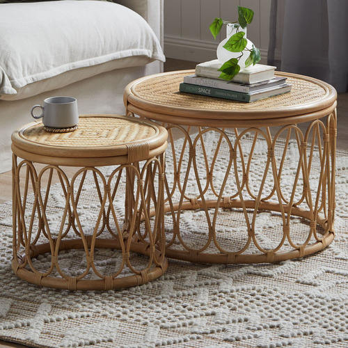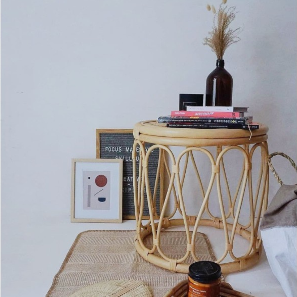 โต๊ะข้างหวายธรรมชาติสไตล์โบฮีเมียนทำด้วยมือโต๊ะเน้นเสียงที่ไม่เหมือนใครสำหรับห้องนั่งเล่นและตกแต่งชายฝั่ง