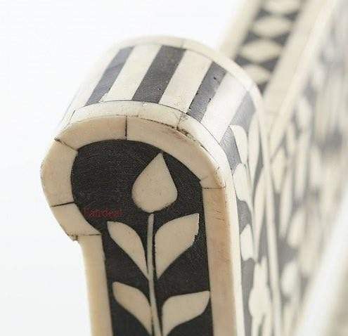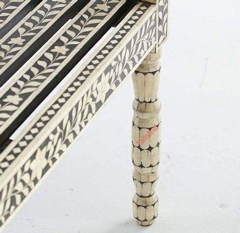 โต๊ะเคลื่อนที่แบบโบฮีเมียนทำมือ ประดับด้วยเรซิ่นลายกระดูกแนวตั้ง | โต๊ะข้างตกแต่งสุดหรูสำหรับห้องนั่งเล่นและห้องนอน