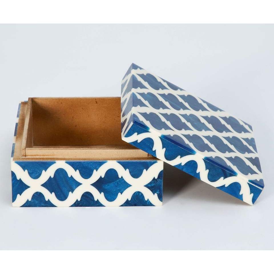 กล่องเก็บของตกแต่งฝังกระดูกทำมือ สำหรับใส่เครื่องประดับและของจิปาถะ สำหรับตกแต่งภายในบ้าน ผลิตโดย อินเดีย อาร์อาร์ เอ็นเตอร์ไพรส์
