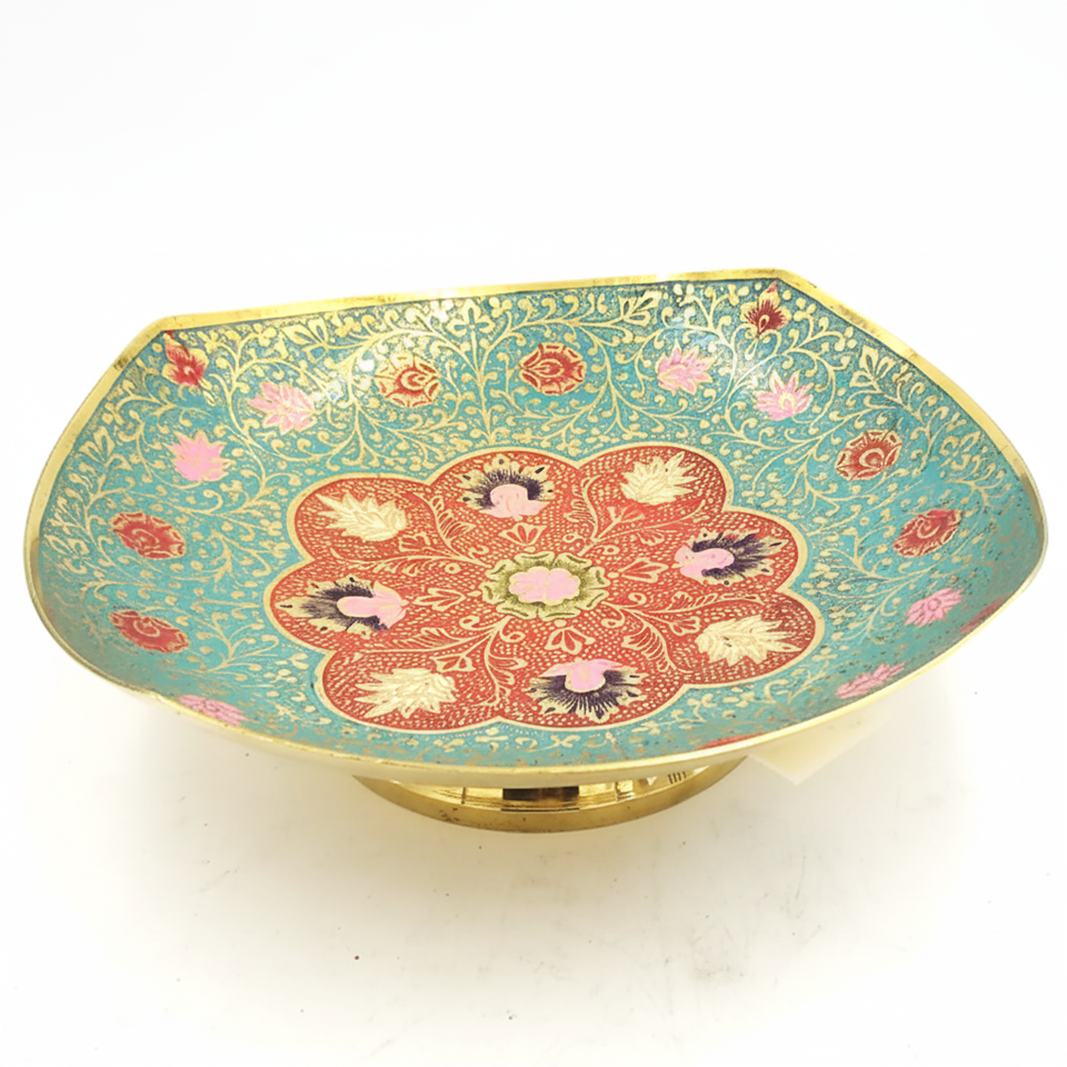 ชามเสิร์ฟพร้อมถาดอเนกประสงค์ทำจากทองเหลืองทำด้วยมือสำหรับตกแต่งโต๊ะหรูหราทำจากโลหะเคลือบเคลือบผิว