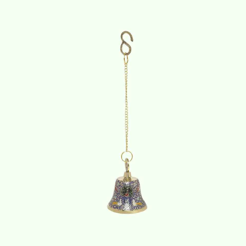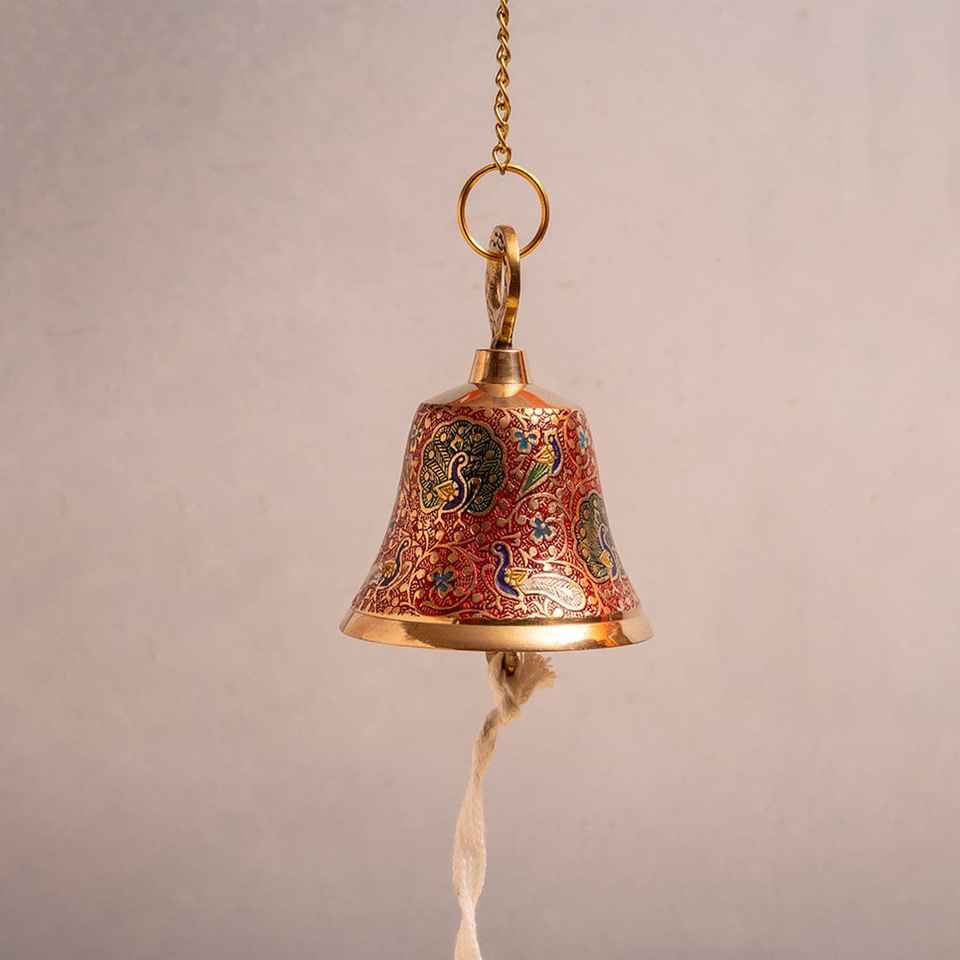 กระดิ่งทองเหลืองทำมือประดับลายนกยูงแบบมีนาคาริ สำหรับตกแต่งบ้าน ประตูทางเข้า และห้องบูชา