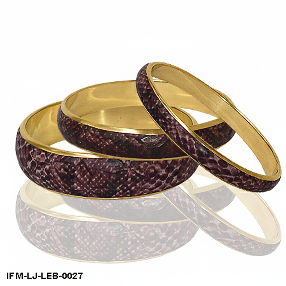 กำไลข้อมือทองเหลืองและหนังทำมือ ชุดสามชิ้น ดีไซน์หรูหรา ลายหนังงู ของขวัญเครื่องประดับที่ไม่เหมือนใครสำหรับวันครบรอบหรือวันเกิดสำหรับเธอ