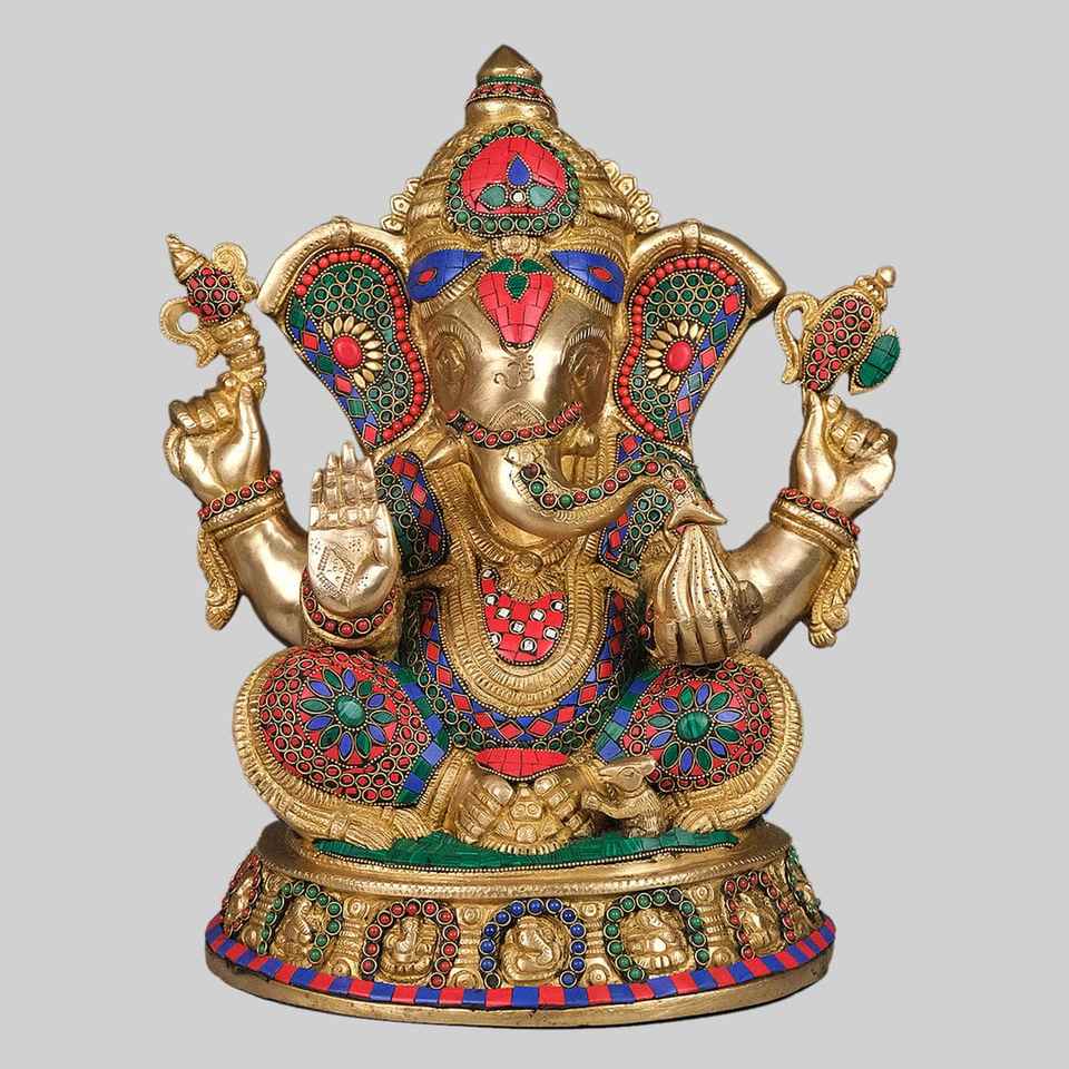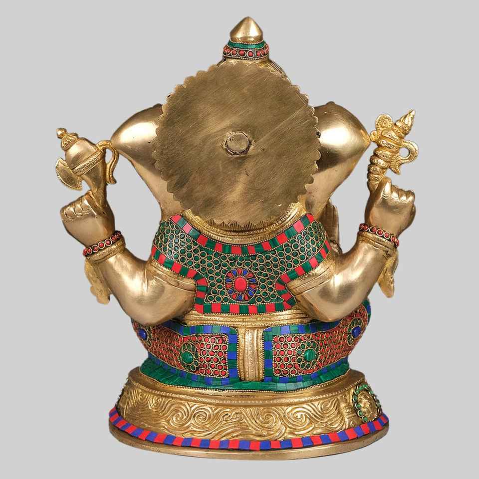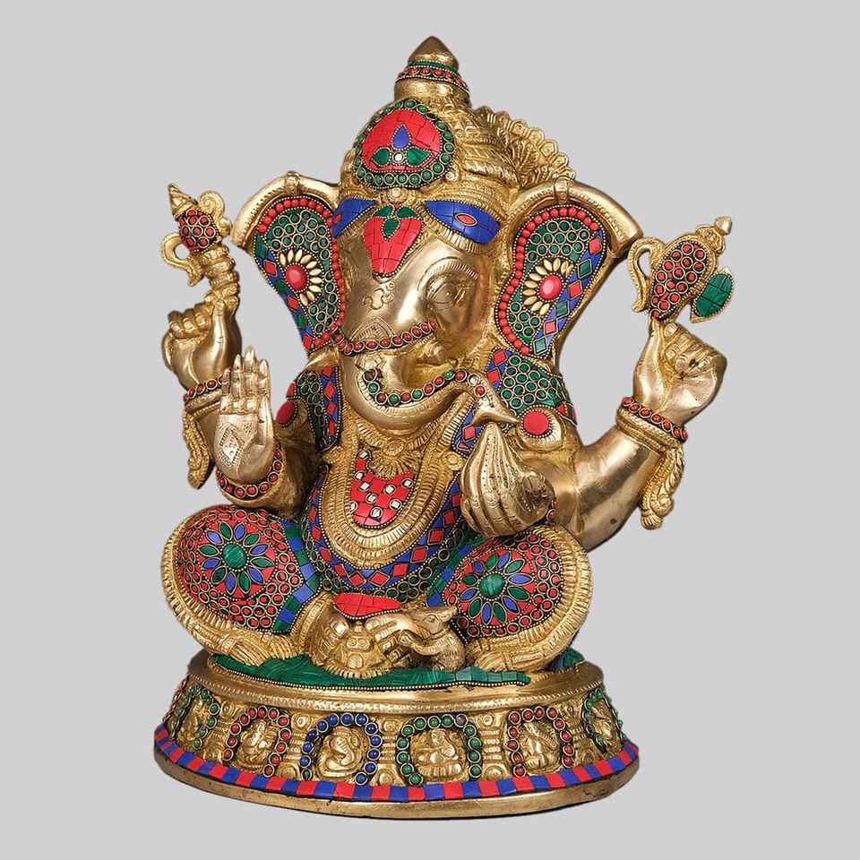 รูปปั้นพระพิฆเนศทำด้วยมือทำจากทองเหลืองพร้อมงานฝังตกแต่งรูปช้างฮินดูสำหรับตกแต่งบ้านและ Vastu Pooja