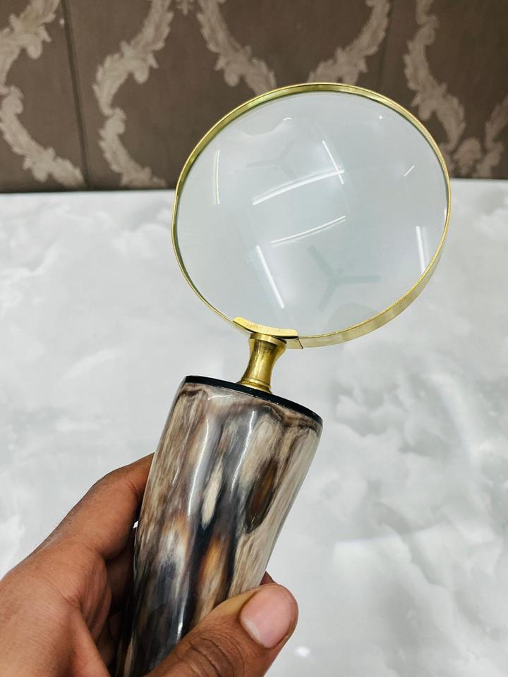 แว่นขยายทองเหลืองทำมือพร้อมด้ามจับจากเขาสัตว์ธรรมชาติแท้ | แว่นขยายแบบวินเทจสำหรับอ่านหนังสือและตรวจสอบ (สีอาจแตกต่างกันไป)