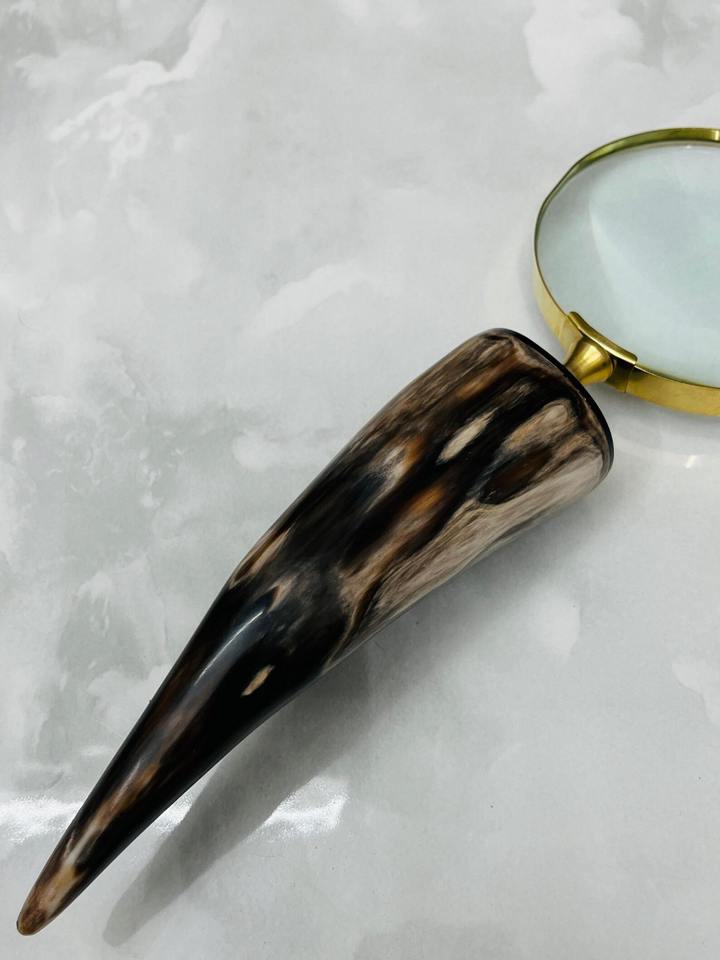 แว่นขยายทองเหลือง 4 นิ้ว พร้อมด้ามจับเขาสัตว์ธรรมชาติแท้