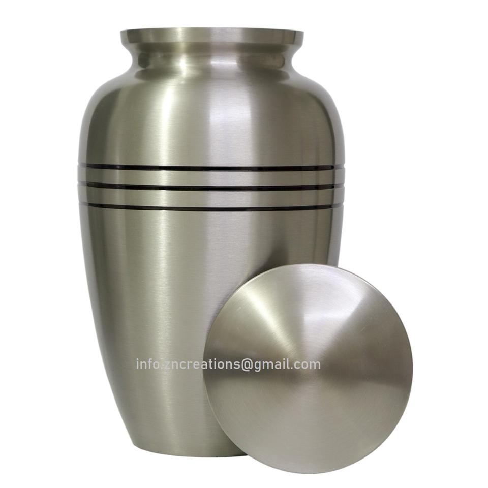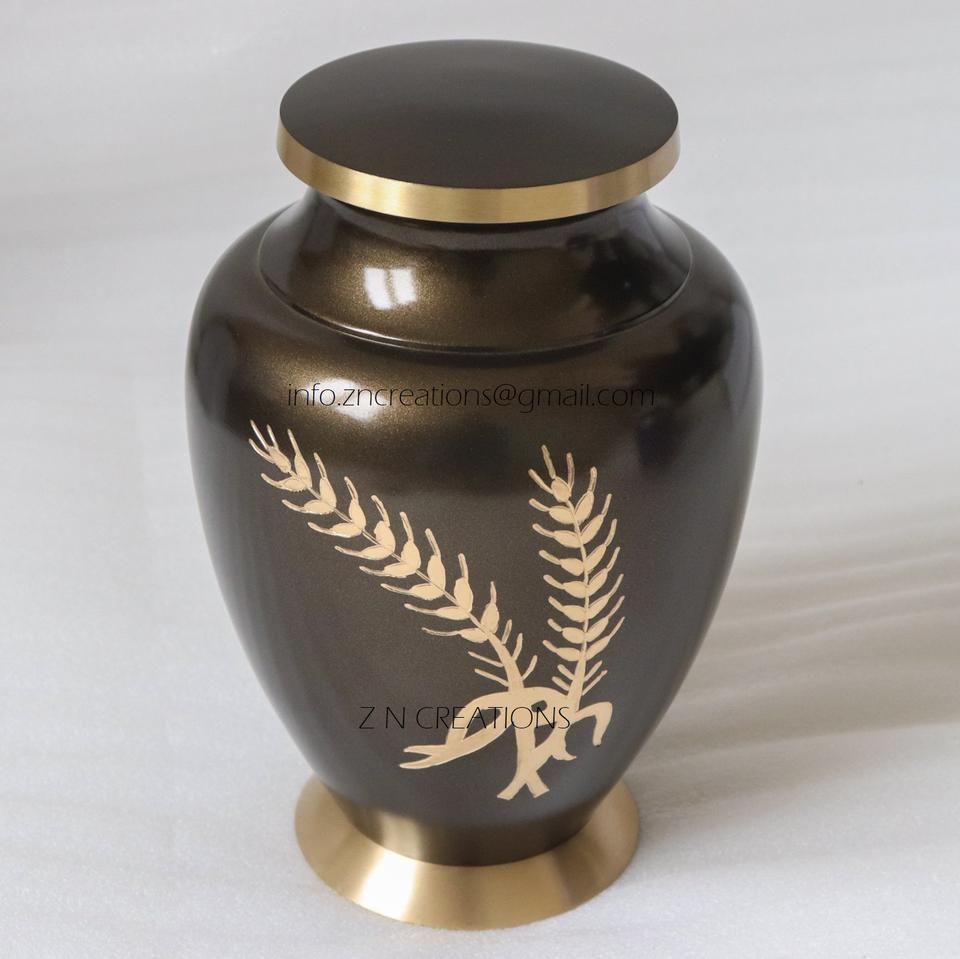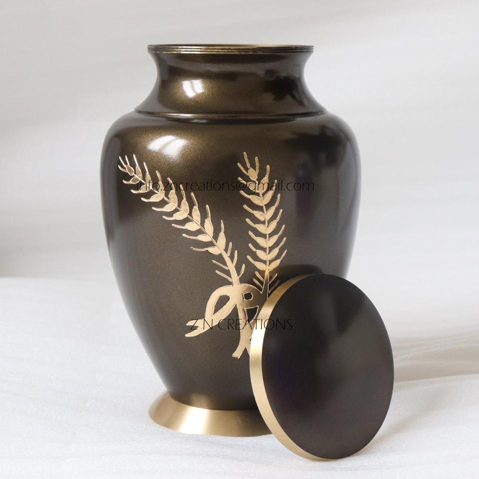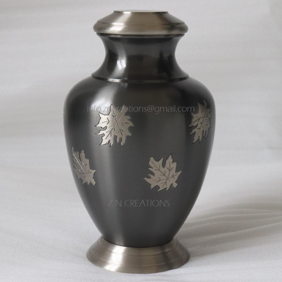 โกศใส่เถ้าโลหะทนทานพิมพ์ลายใบเมเปิ้ลทำจากทองเหลืองทำด้วยมือมีใบมีดสลักเป็นสีเทา