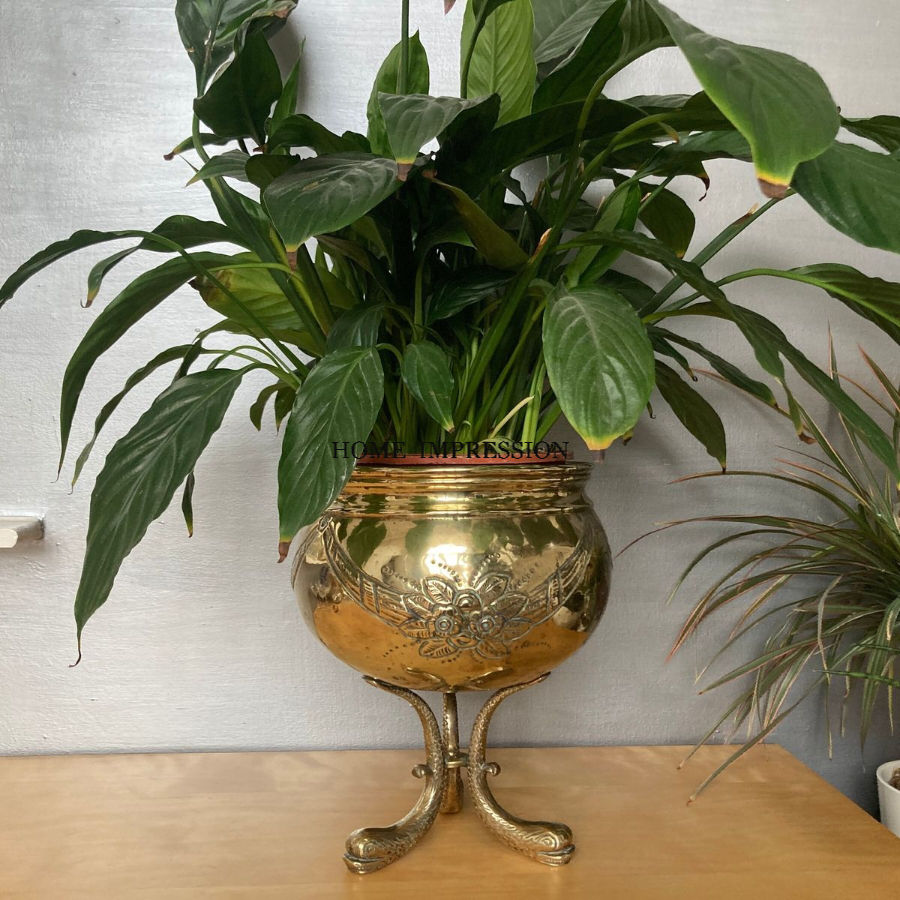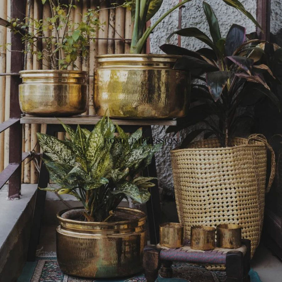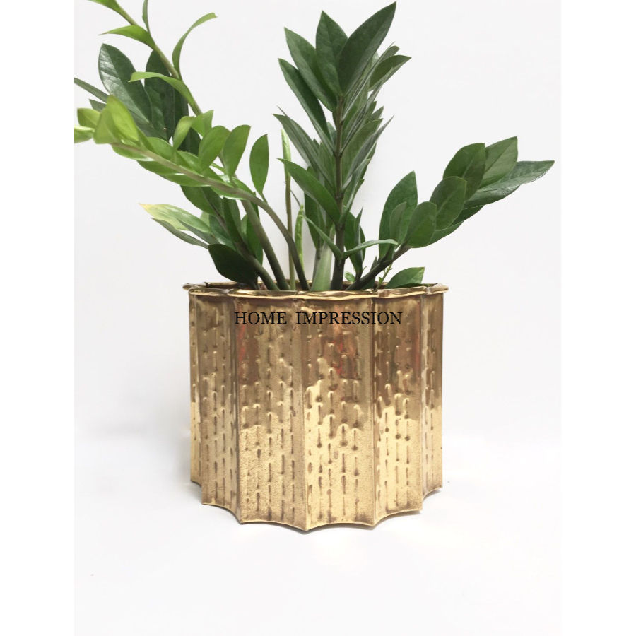 กระถางและกระถางทองเหลืองชุบทองทำด้วยมืออุปกรณ์ตกแต่งสวนขนาดใหญ่และกระถาง
