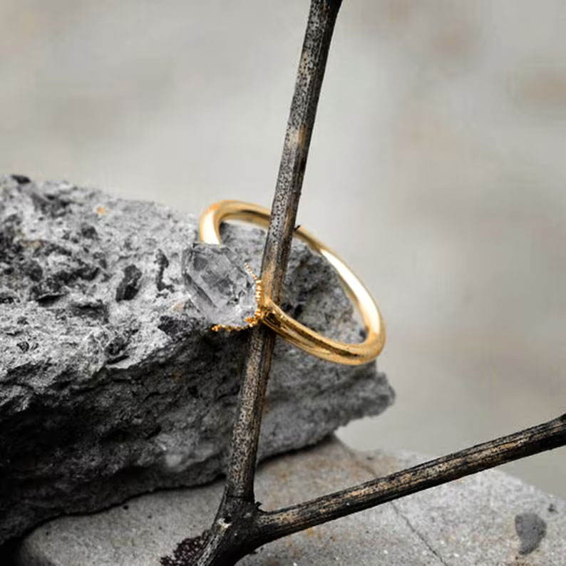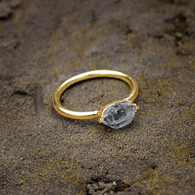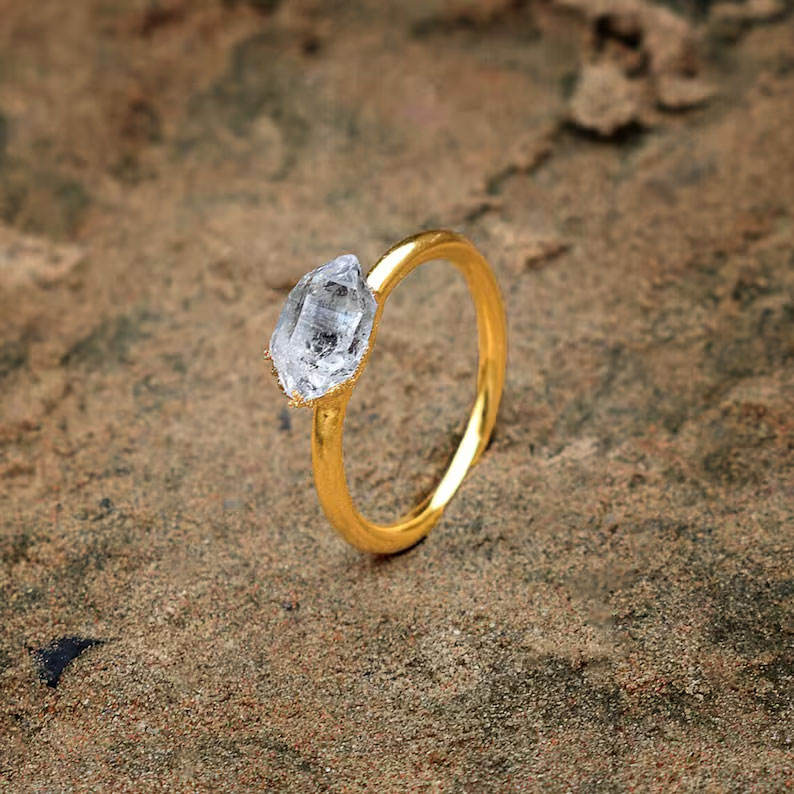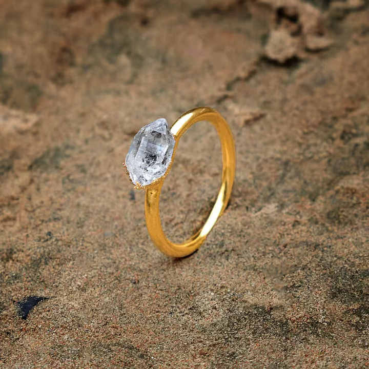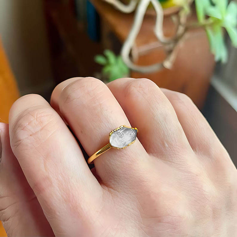 แหวนเงินแท้ประดับคริสตัลควอตซ์ดิบทรงเหลี่ยม งานแฮนด์เมด ชุบทอง 18K สไตล์โบฮีเมียนวินเทจ สำหรับผู้หญิง ของขวัญเครื่องประดับ