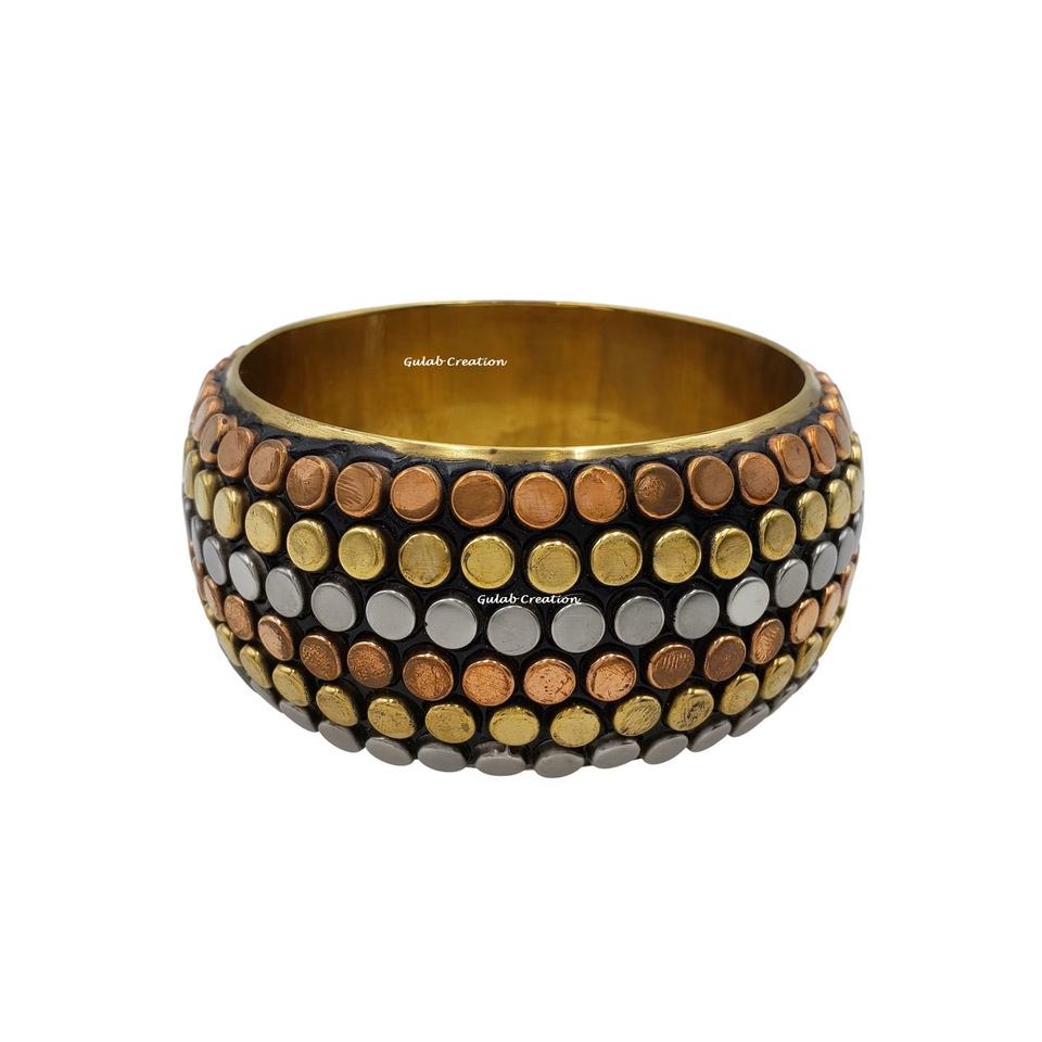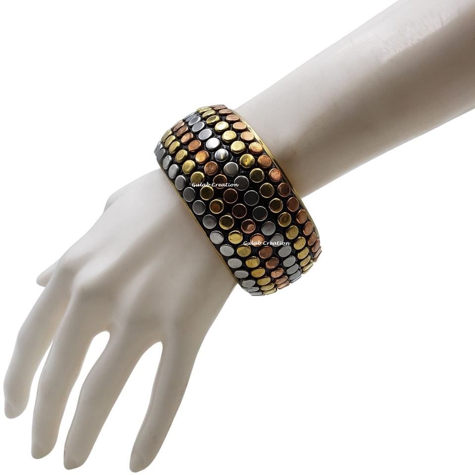 Handcrafted Brass Stainless Steel Lightweight Tricolor Stud Cuff Bangle Bracelet Gold Silver Finish Womens Fashion Jewelry