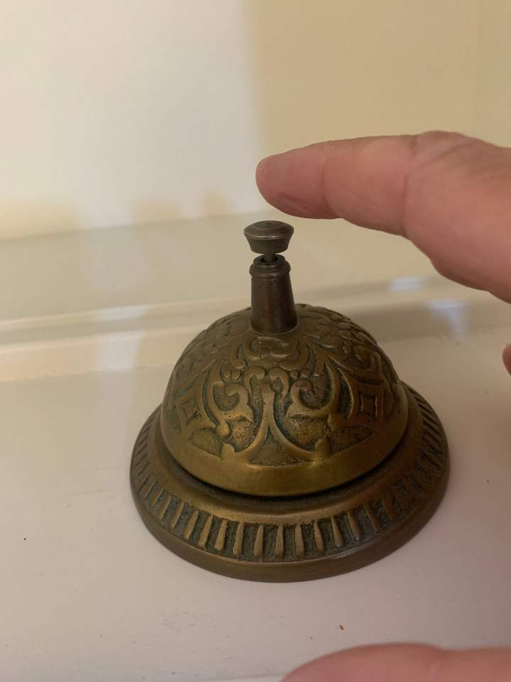 กระดิ่งตั้งโต๊ะทองเหลืองทำมือ สำหรับโต๊ะล็อบบี้โรงแรมและใช้เรียกแขก ด้วยรูปลักษณ์ตกแต่งแบบคลาสสิก