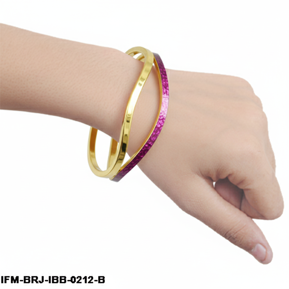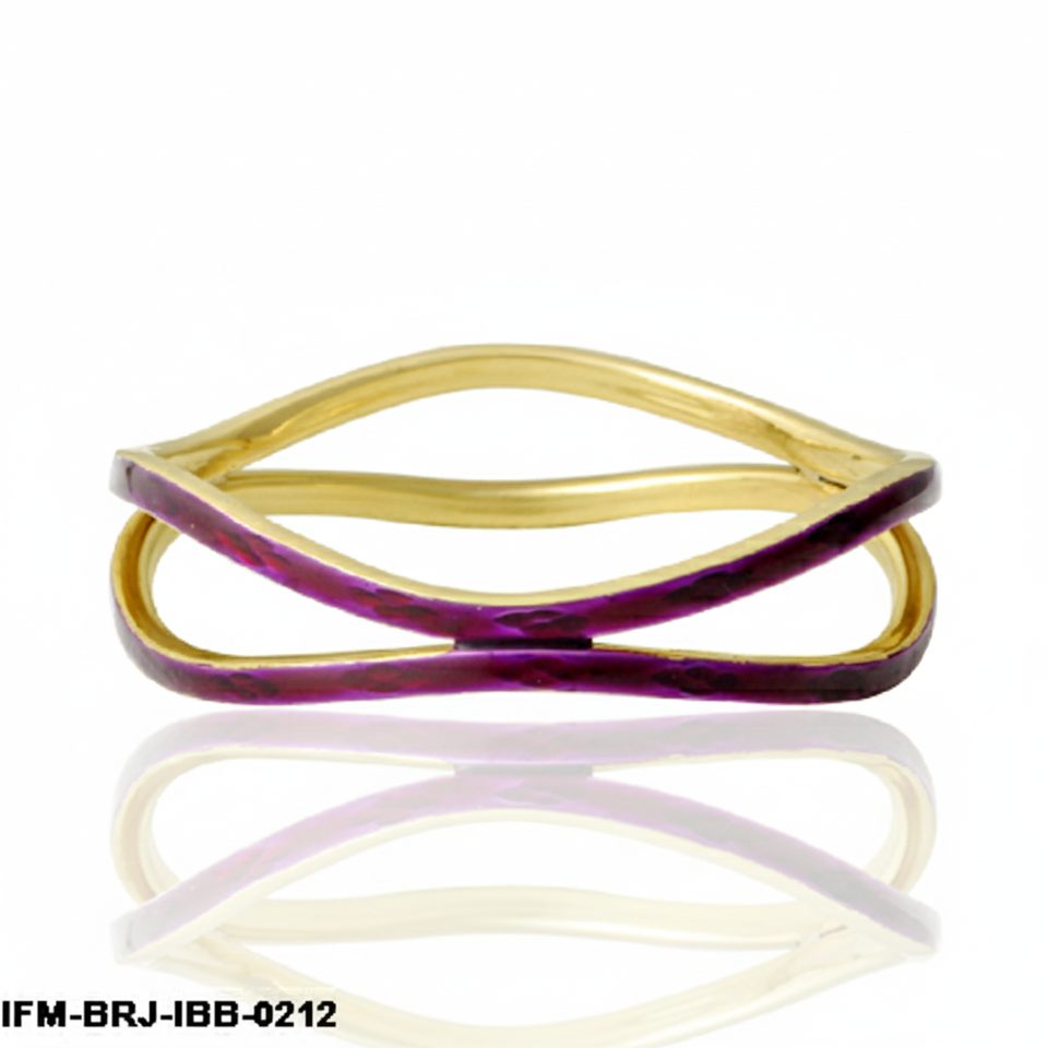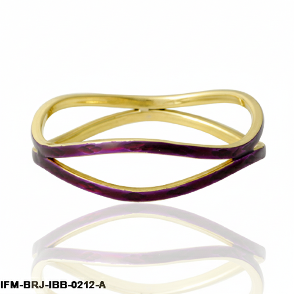 กำไลข้อมือทองเหลืองทำมือ ลายคลื่น สองสี ทองและสีม่วงแดงเคลือบเงา กำไลอินฟินิตี้ สไตล์โมเดิร์น มินิมอล สำหรับผู้หญิง