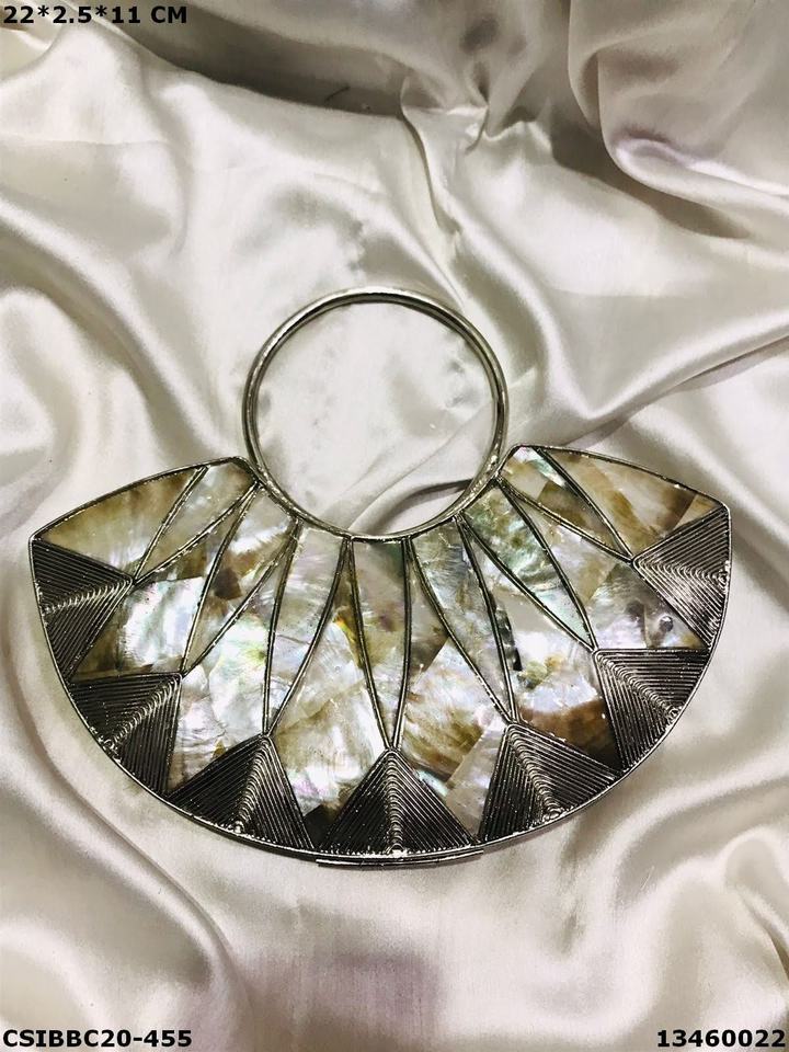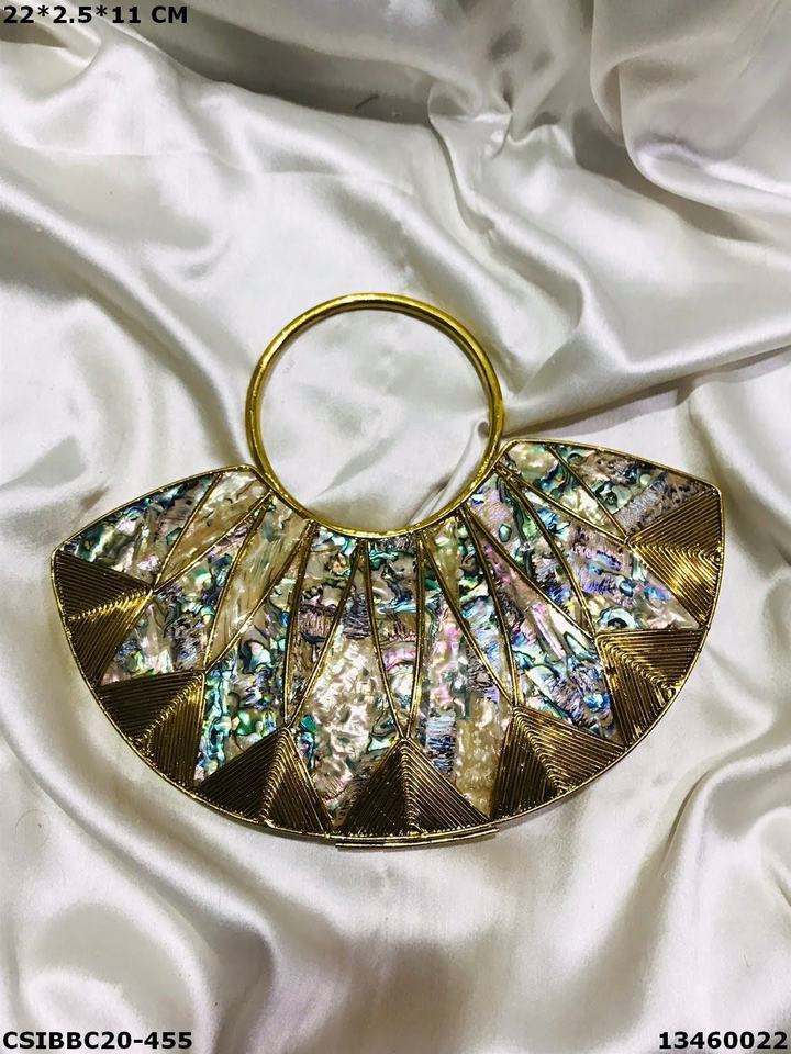 Product name:Handcrafted Bridal Brass Mother of Pearl Ladies Designer Clutch Bag