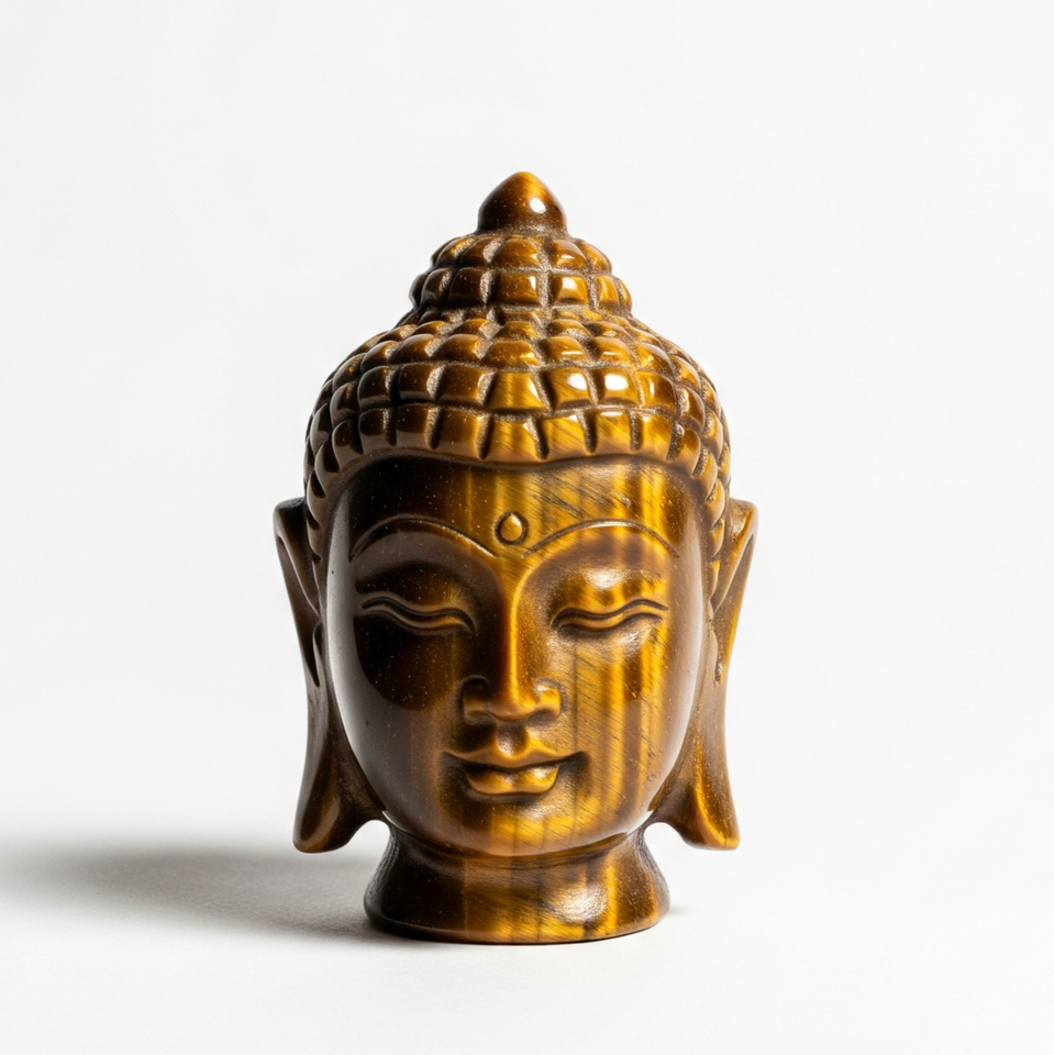 Handcrafted Buddha Head Statue Figurine Tiger eye Crystal Quartz Chakra Healing Semi-Precious Stone Carved Craft Buddhism