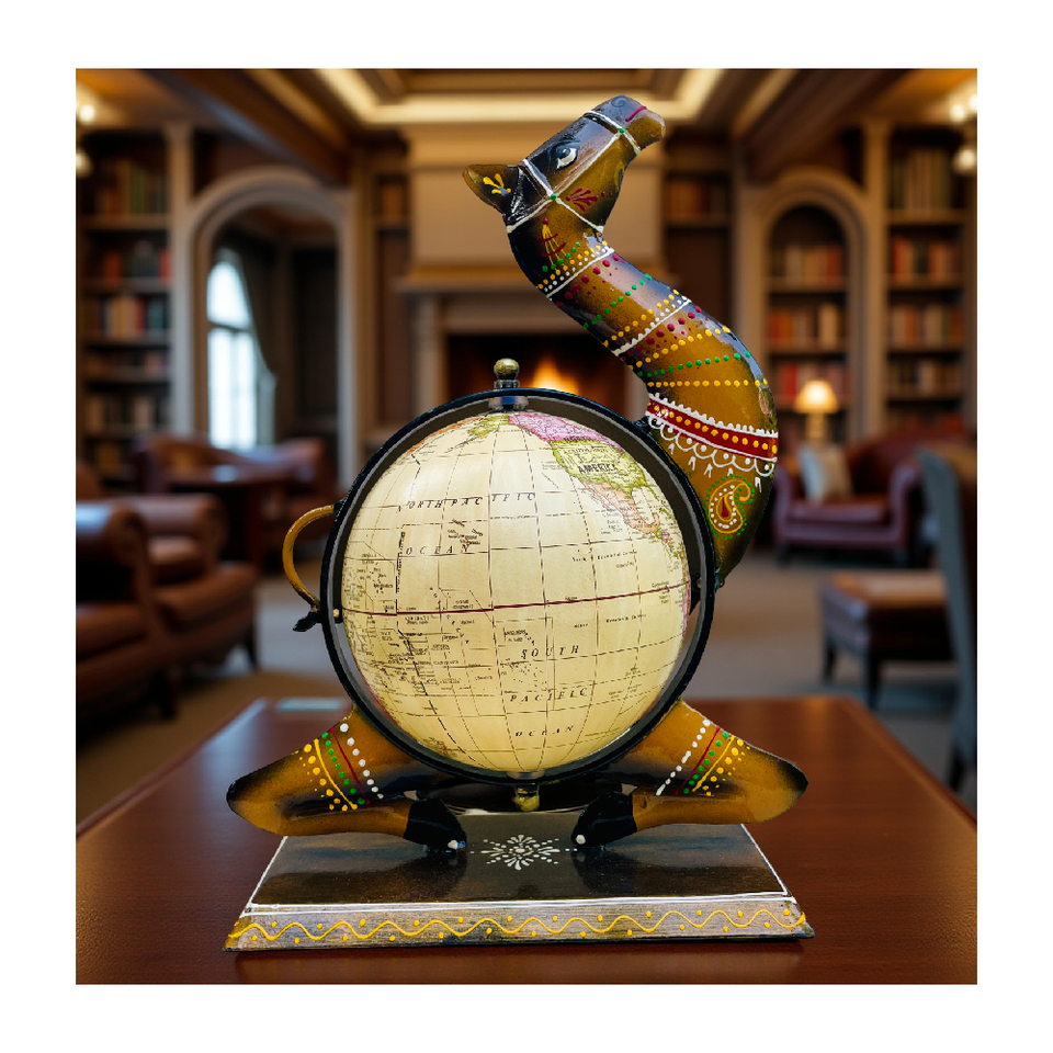 Design Theme:Camel-Shaped Ethnic Art with World Map Globe
