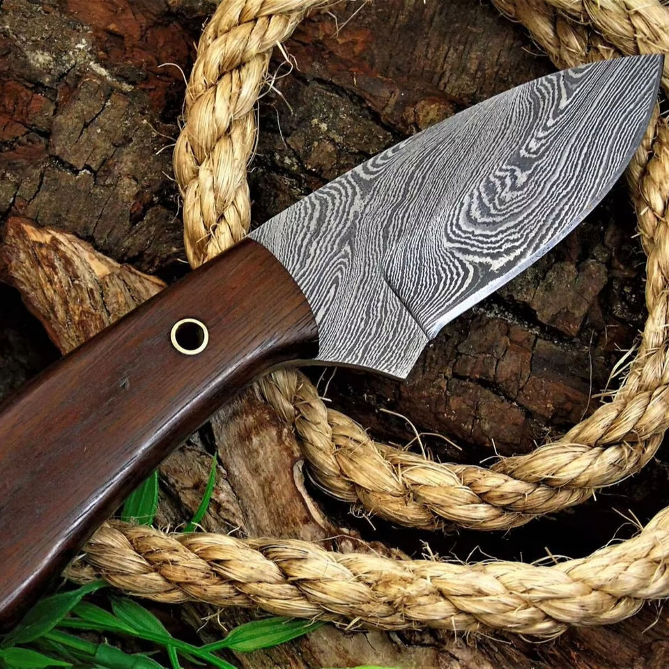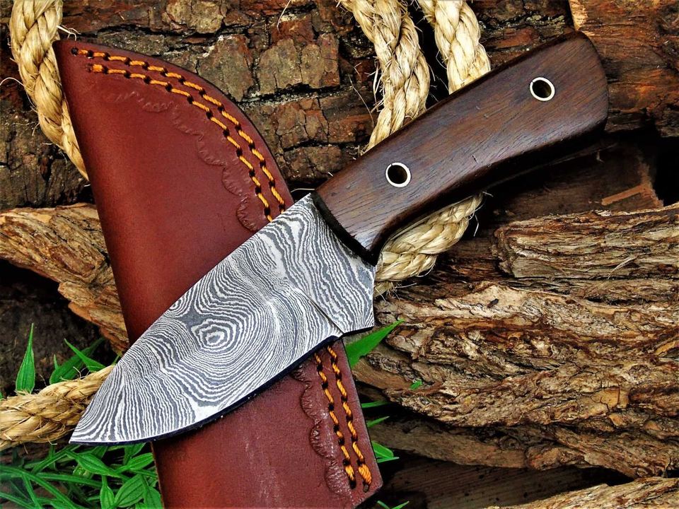มีดสกินเนอร์เหล็กกล้าคาร์บอนทำมือพร้อมขอบหยักบางส่วนน้ำหนักเบาทนทานดีไซน์ขนาดกะทัดรัดด้ามจับทำจากไม้เนื้อแข็ง