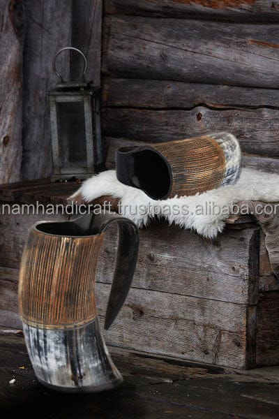 ฮอร์นแก้วแบบชาวไวกิ้งแกะสลักงานทำจากธรรมชาติสั่งทำได้แตรสำหรับดื่มบัฟฟาโล KOI ถ้วย tankard Horn สำหรับเบียร์