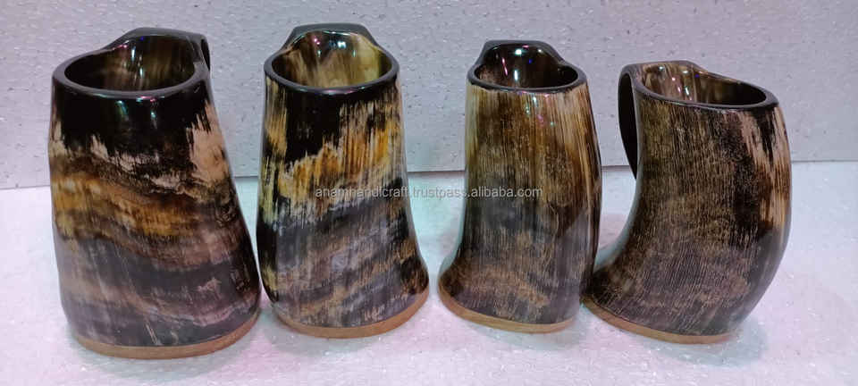ฮอร์นแก้วแบบชาวไวกิ้งแกะสลักงานทำจากธรรมชาติสั่งทำได้แตรสำหรับดื่มบัฟฟาโล KOI ถ้วย tankard Horn สำหรับเบียร์