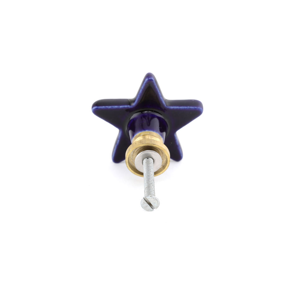 ลูกบิดลิ้นชักทำมือเซรามิกพร้อมดีไซน์รูปดาวสีน้ำเงินลูกบิดเซรามิกคุณภาพสูงสำหรับตกแต่งประตูตู้เสื้อผ้าลูกบิดเซรามิก